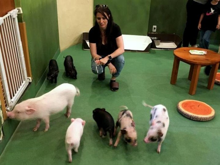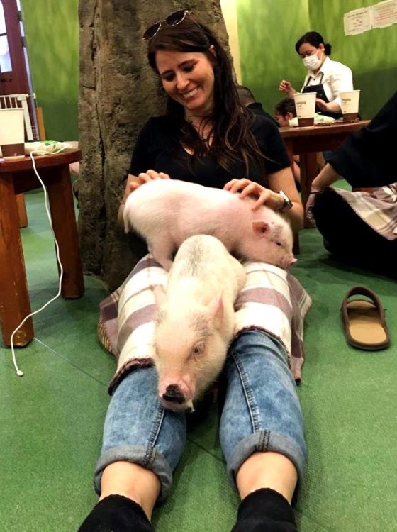 Další podobná zkušenost byla při koupi lístků na sumo turnaj. Měli jsme štěstí, že v době našeho výskytu se zrovna jeden v Tokiu konal, takže když asi měsíc před odletem šly lístky do prodeje, neváhala jsem si na 3. hodinu ranní nastavit budík, abych se klikací soutěží pokusila dva urvat. A protože jsem měla natrénováno z dob studií, kdy jsem se několikrát za semestr těchto soutěží účastnila při přihlašování na zkoušku, tak se mi po půlhodině nervů podařilo lístky získat. Teda lístky samozřejmě přímo ne, ale 13místný kód, který bylo opět potřeba vyměnit v supermarketu (ano, přímo v supermarketu konkrétní společnosti) za fyzické vstupenky. Jinak jsme dopředu kupovali vstupenky jen na expozici TeamLabs, kde do mailu přišel odkaz, který bude aktivní až v den návštěvy (teda celkem pokrok). I když je o tuto výstavu celkem zájem, je velká šance nákupu i pár dní předem. Naopak pokud chce člověk navštívit Universal Studios, Studio Ghibli, DisneyLand nebo DisneySea, lístky jdou do prodeje asi 2 měsíce předem a jsou hned fuč. To stejné platí i o tématických kavárnách jako Pokémon Café, MaidCafé, RobotCafé nebo kavárna se psi, kočkami, sovami nebo miniprasátky. To všechno lze v Tokiu či Osace najít. A protože je to tak absurdní, až to k extravaganci velkých japonských měst prostě patří, udělala jsem rezervaci k zakrsnutým prasátkům i já.