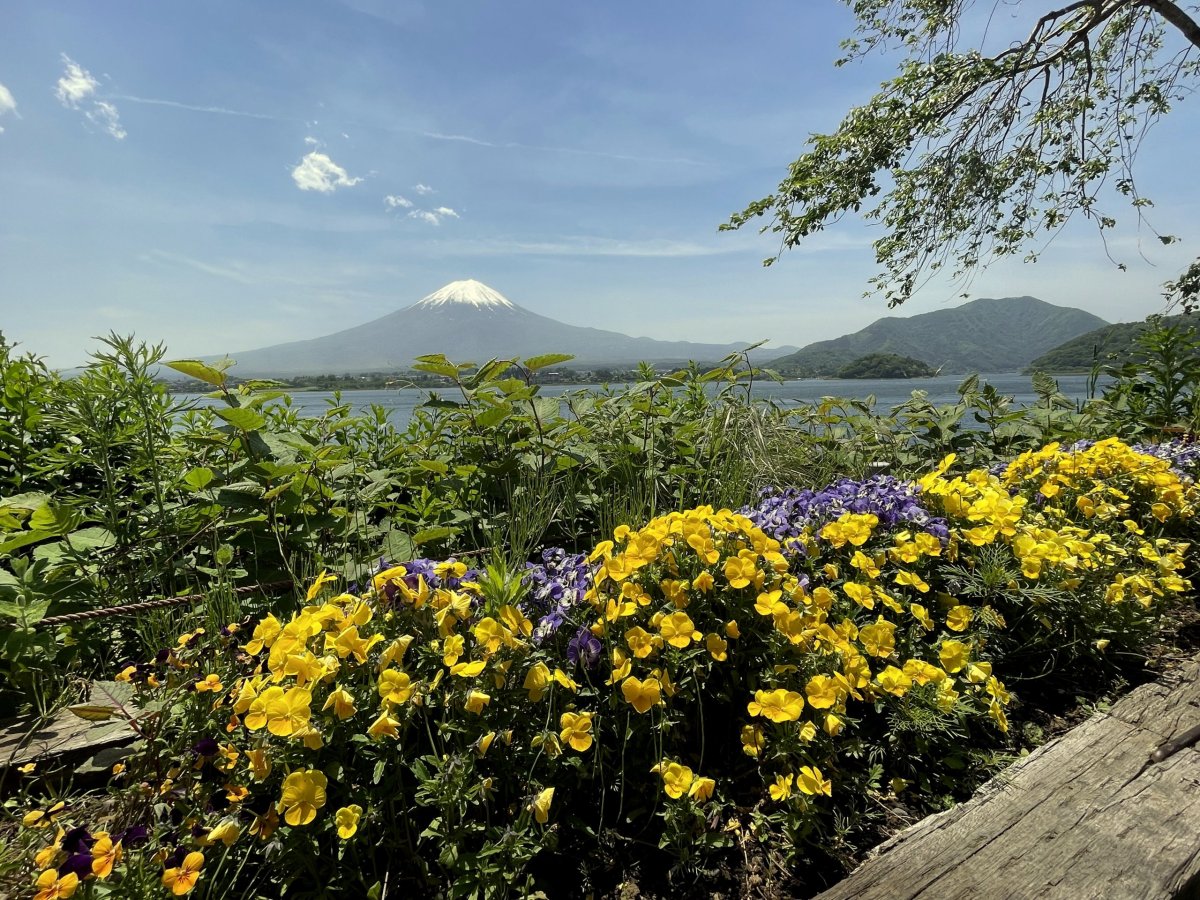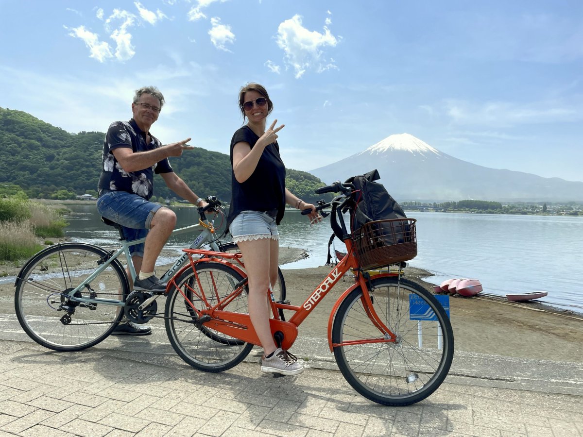 Snídaně se táhne v podobném miskovém duchu. Šunka, sýr, vajíčka, ovoce dobrý, to by šlo, ale chobotnici ráno vynechám. S plnými břichy půjčujeme kola a vydáváme se na celodenní okruh kolem jezer Kawaguchiko a nedalekého Saiko. Cestou se kocháme pohledy na Fujinu ze všech stran. Na tuto nejvyšší horu Japonska s vrcholem ve výšce 3776 m.n.m. který je ještě pokryt sněhem, se dá i vystoupat, ale pro turisty je otevřena jen někdy mezi červencem a zářím. Škoda, tak příště. K večeru s kilometry v nohách se vracíme zpět, onsen, večeře a spánek.