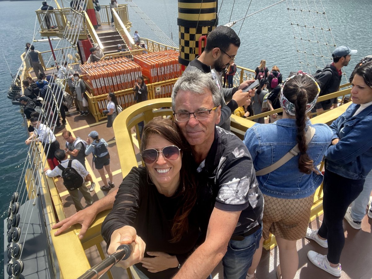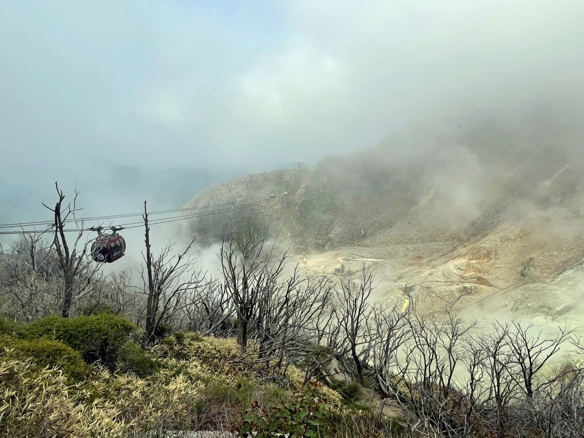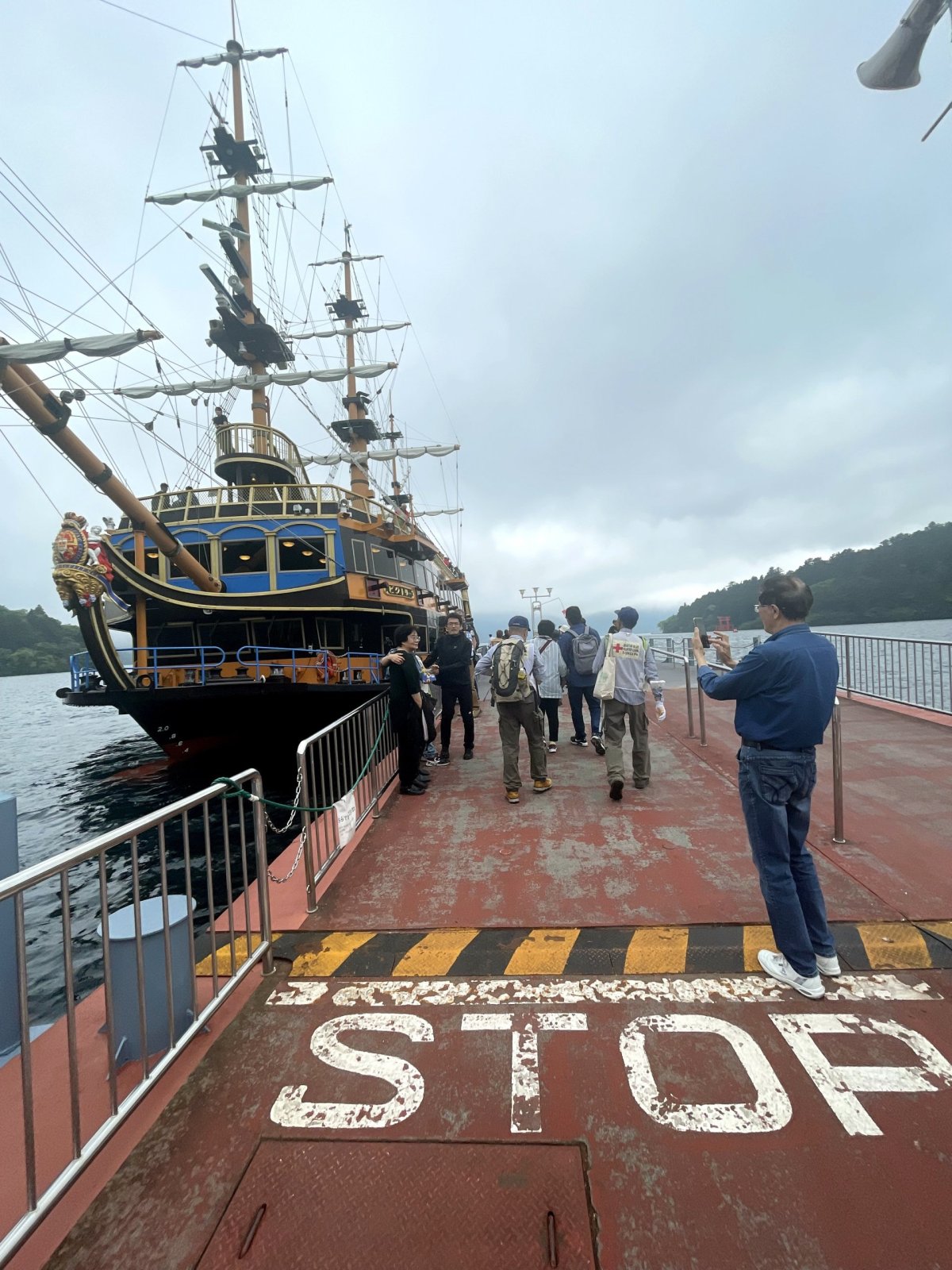 Poslední celý volný den v Japonsku se ještě narychlo rozhodujeme pro výlet do Hakone. Ráno kupujeme jednodenní HakoneFreePass a po hoďce a půl měníme vlak za bus až k jezeru Ashi, kde se naloďujeme na pirátskou loď. Počasí nám ještě chvílí přeje, je jasno, tak užíváme výhledy do okolní krajiny. Na druhé straně jezera se vydáváme na menší procházku, poobědváme a zase lodí míříme zpět. To už se ale zase zatahuje a začíná pršet. Měníme loď za lanovku a vystupujeme jak na měsíční krajině - vulkanické oblasti oranžového nádechu, kde z povrchu sálá sirná pára, a kde i čichem je toto místo dost specifické. Traduje se, že když člověk sní černé vejce uvařené v této sirné páře, prodlouží se mu život o sedm let. No uvidíme. Tak tak jsme to stihli - už se zase zatáhlo a vidět nejde vůbec nic, tak se zase další lanovkou vydáváme na cestu zpět. Byl to náročný den, plný cestování a přestupů, a i když se to za jeden den stihnout dá, je to málo. Myslím, že tato oblast si zaslouží minimálně dva dny, aby si člověk mohl vychutnat ten klid a měl čas se smočit v nějakém přírodním onsenu v okolí.