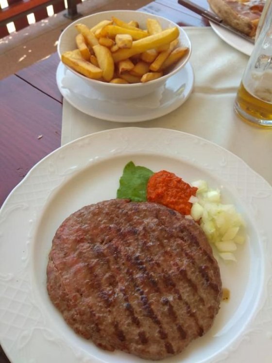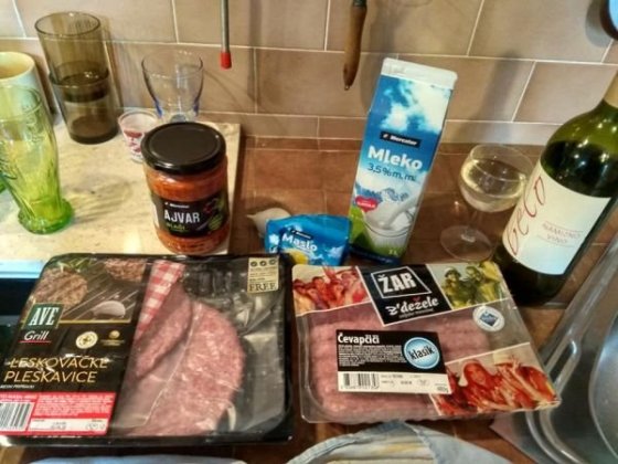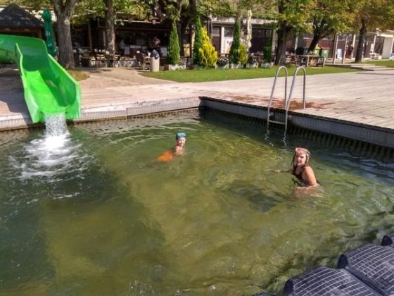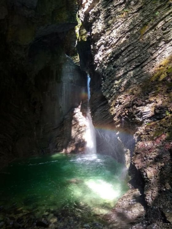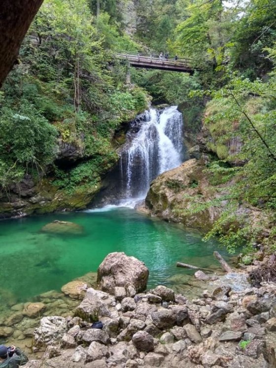 Po raftech jsme si dali pizzu a pljeskavici (placka z mletého masa - vlastně takové placaté čevabčiči 😀) s ajvarem (čalamáda z pečených paprik, rajčat a lilku - vlastně takový balkánský kečup 😀) přímo vedle našeho kempu, trochu si odpočali, sbalili fidlátka a pokračovali dál. Zbytek týdne jsme měli booklé ubytování v Bledu. Po cestě jsme ještě stihli navštívit vodopád Kozjak. Nenáročná procházka, ale o hlavní sezónu tu zřejmě bude pěkně narváno.