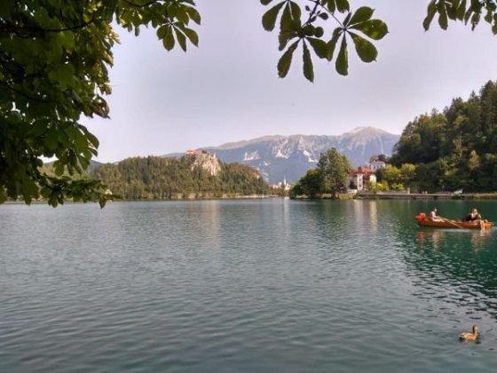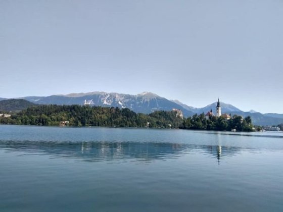V podvečerních hodinách přijíždíme do města Bled, známého především díky jezeru Bled. Uprostřed léta to tu prý praská ve švech a je lepší zvolit klidnější Bohinské jezero nedaleko odtud, na konci srpna tu už ale byl klídek. Ubytování jsem zvolila přes AirBnb a dodnes na něj s láskou vzpomínám. Jde o třípatrový rodinný dům se sedmi pokoji, obývací pokoj a kuchyně jsou sdílené pro všechny hosty, WC se sprchou vždy pro jedno patro. Majiteli jsou sympatičtí manželé Vesna a Mitja. Pomohli s plánováním výletů, byli nápomocni ve všech směrech, opravdu doporučuji, zamilovali si nás, už jen díky lázeňským oplatkám, které jsme jim dovezli. ☺️ Cena navíc byla též víc než sympatická - 3000,- za pět nocí. K dispozici je i stinná terasa. Každý večer se v obýváku sešli lidé doslova z celého světa - grafička z Francie, studentky z UK, táta se synem z Německa, slečna z Filipín,...každý večer nové příběhy.
