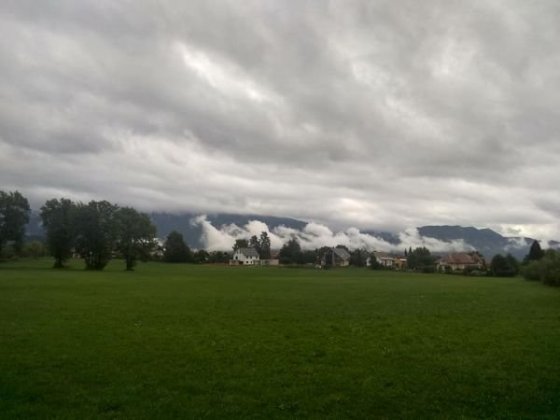 Zpět se vracíme pořádně hladoví, zkoušíme první restauraci po cestě - Gostilna Liza v kempu Liza http://www.camp-liza.com/cs/restaurace-liza/, nabízející místní kuchyni s příjemným posezením venku. Zkouším nabídku dne - dušené jehněčí a polentu (úplně mě to neoslnilo 😀), děcka neriskovaly a sázely na jistotu - čevabčiči, hranolky, kečup. 😆 K večeru jsme ještě omrkli centrum, zrovna se zde pořádal nějaký koncert. Na mě už však značně doléhala únava z probdělé noci za volantem, navíc nás čekalo brzké vstávání, takže jsme krátce po osmé zalezli do stanu. Trochu jsme podcenili noční teploty, přeci jen, jsou to Alpy a tak počítejte s vrstvou navíc, bylo jen něco málo nad nulou.