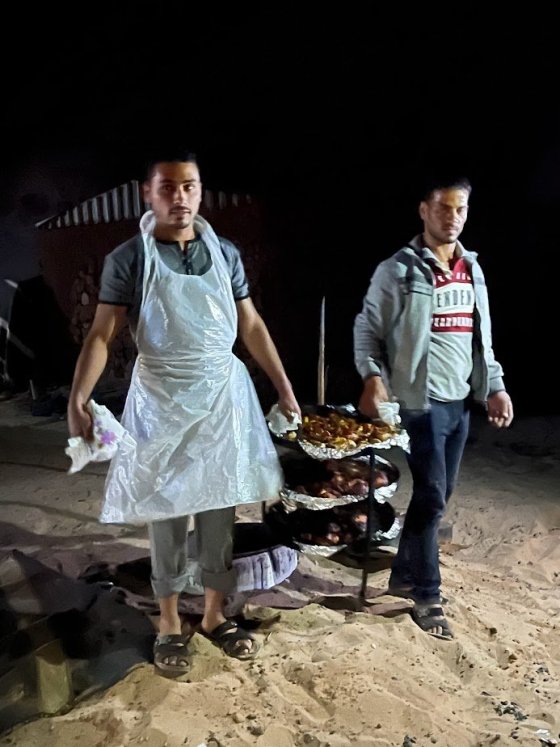 Vrátili jsme se při západu slunce. Okouzlující pohled. Po jeep tour na nás čekala večeře formou švédských stolů, kde se najedli jak masožravci, tak i vegoši, jako jsem já. Místní se chlubili i přípravou pokrmů v písku a udělali kolem toho i velký humbuk. "Come come" popostrkovali nás, abychom se šli podívat na to, jak se jídlo ze země vytahuje. Byli na to náležitě pyšní :))