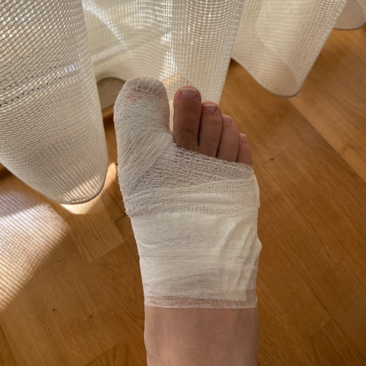 Pytel s nákupem se protrhnul, dělám rychlý krok, abych sáhnul po kutálející se láhvi s vodou. Přitom blbě šlápnu a už jedu palcem u nohy po asfaltu. Palec tak pěkně krvácí a taky dost bolí, takže se belháme na byt. Uděláme první pomoc a je vidět, že je prst už pěkně nateklý. Na zbytek dne se přesouváme na pláž s tím, že budu odpočívat a uvidíme. Večer už pak není jen nateklý ale celý fialový. Super je majitel apartmánu, který nám aspoň pomůže se základním ošetřením, průběžně se ptá, jestli něco nepotřebujeme atd.