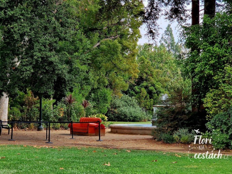VENKOVNÍ SCÉNYZ vozítka vystoupíš a jdeš vyznačenou trasou. Jako první k altánu z Gilmore Girls, pokračuješ po chodníku kolem dalších budov až k dlouho očekávané fontáně a gauči z Friends. Ten gauč je ale dost tvrdý. Je to filmová rekvizita, takže není čalouněný, ale je to tvrdý plast. Na to by měli upozornit předem. Já si totiž sedl s takovou radostí a v takové rychlosti, až jsem si narazil zadek. Au.