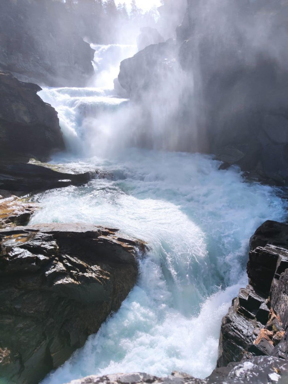 To, co pak vidíme po cestě je nepopsatelný. Cesta vede údolím, všude kolem nás krásné zalesněné svahy a mezi nimi na každém rohu obří vodopád. Prý tu letos strašně málo pršelo. Chtěla bych vidět ty vodopády, když prší hodně. I tak jich tu bylo mraky a ta jejich výška! A já chtěla letos strašně na Mumlavský vodopád. Myslím, že až se tam jednou vydám, asi budu plakat. Viděla jsem to jen z fotek a tohle je úplně jiné kafe. Nikde nikdo, všude samý krásný vodopády uprostřed toho se klikatí silnice, která kopíruje říčku, do které proudí voda z těch úchvatných vodopádů. Nejdříve fotíme jak zběsilí. Po hodně, kdy jsme vodopádů viděli už ani nevím kolik, se při hlášení: "Jé hele další vodopád", většina auta ani nepodívá. Je jich tu tolik! Jeden krásnější jak druhý. Krása střídá nádheru!