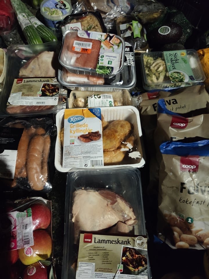 A bavíme se Ondrovým sbíráním mincí. Ten chlap si sundal boty, fusekle a vlezl na skleněnou část, kde tekla voda. Něco jako u nás do kašny, tu lidi hází různé mince. A tak zatím co my se kocháme výhledem a stydíme se za Ondru, Ondra vydělává těžký love :D. Myslím, že tu nasbíral tak 300 NOK. Ostuda až na půdu, děláme že ho neznáme, ale uznávám, že je to zajímavý způsob, jak si vydělat peníze snadno a rychle. Pokud ti teda nevadí ta ostuda :D. Gabo tam chtěl jít taky, ale Ondra ho vyhnal, že má ty prašulky zatím roztřídit a počítat. Což je pro Gaba super zábava. Tohle až ten chlapec bude vyprávět ve školce nebo ve škole! Mimochodem jsem ještě nezmínila plechovky. Z toho se tady dá udělat taky dobrej business. Pokud ti teda nebude vadit vlézt do konťáku s plechovkama, nebo tam ručkou zalovit. Sakumprásk si Ondra sběrem plechovek z konťáku u kterého jsme spali dnes v noci a "výběrem peněz" na vyhlídce vydělal něco přes 700 NOK. Tohle kdyby věděli naši čeští bezdomovci, jak tady si lidi žijou :D! Mimo jiné tady funguje tzv. dumpser diving. Na konci dne se stačí postavit na místo, kam vyhazují odpad ze supermarketu. Dá se tam objevit fakt poklad. To jsme teda nezkoušeli, nebyl na to čas. Ale když jsem viděla fotky, co se dá takhle získat, tak bych se nestyděla to klidně zkusit :D. Podle Norů prošlé ovoce a zelenina by se u nás normálně prodala za plnou cenu. Nejen to, ale i konzervy, kde se blíží konec spotřeby atd atd. Viz níže přikládám foto z jiné výpravy, kde se jídlo takto ukořistit podařilo. Posuďte sami :)