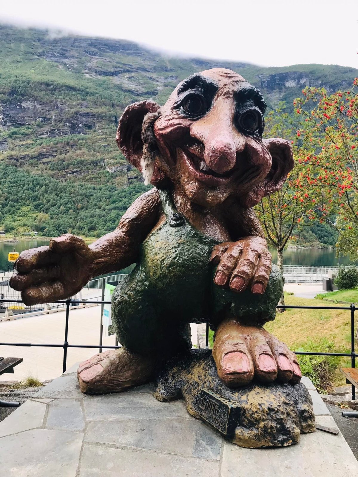 Když v kašně nezbyla ani koruna a všichni se pokochali výhledem, sjeli jsme serpentinami dolů do údolí do městečka Geiranger, které jsme si krátce prošli. Končí sezóna a vše je tu s 50% slevou. I v restauraci mají slevy . Tak jsme se se ségrou rozšouply a daly si napůl celé meníčko. Hranolky, burger a cola. Kvalitou bych to přirovnala k lepšímu stánku u koupáku. Ale pořádné jídlo tu máme poprvé, takže to v nás zahučí jako největší lahůdka michelinské restaurace. Zároveň tím všichni oživí a jde se na tůru :).
