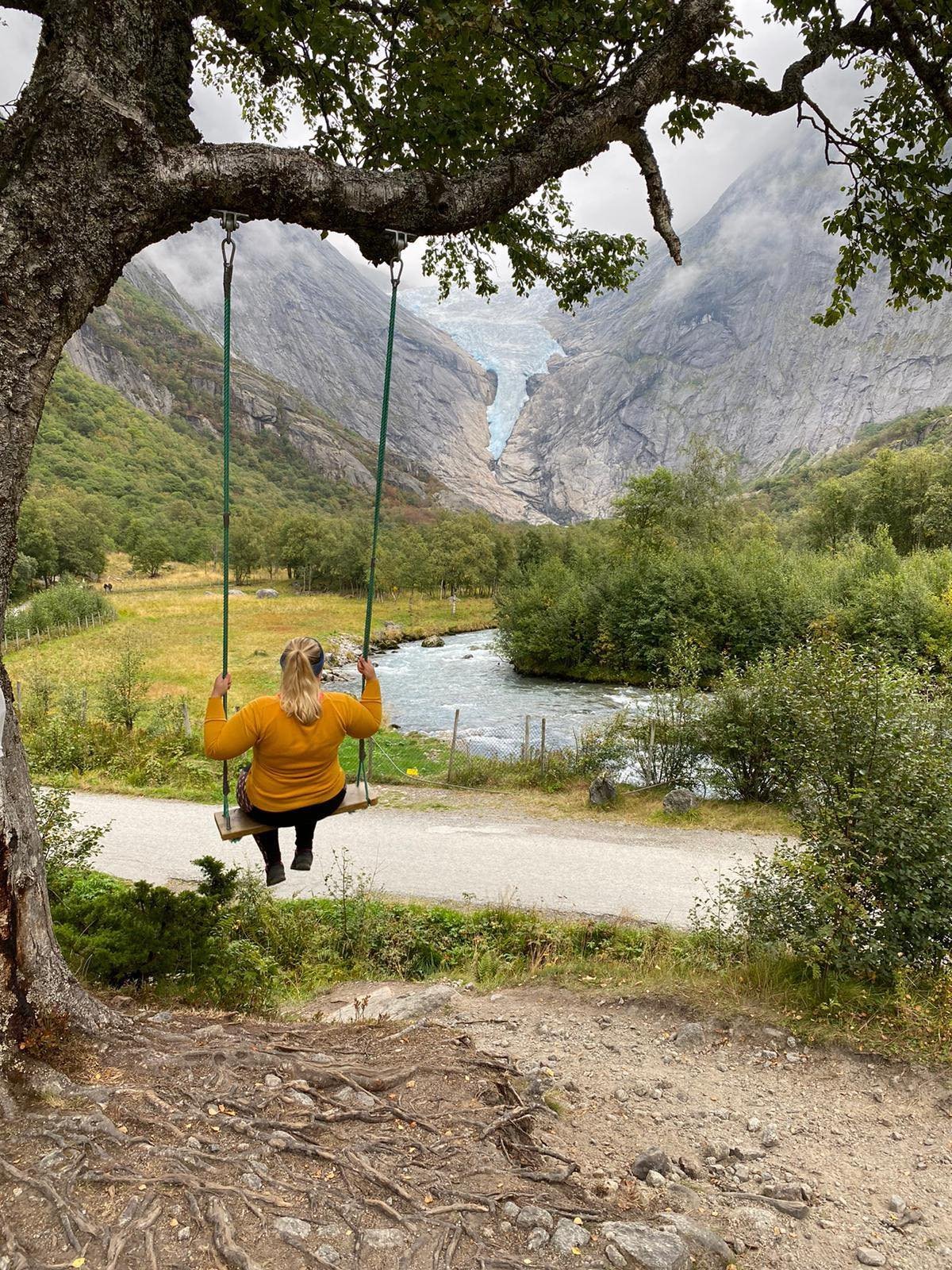 Kousek od místa kde jsme spali je největší ledovec v Evropě. My jsme tedy viděli jen maličkou část z něj. Blíž k němu se dá jít jedině s průvodcem. Autem se dá dojet skoro až k němu a tak je to oproti ostatním výšlapům spíš příjemná procházka :). Cestou míjíme vodopády a cesta je upravovaná. Dokonce se k ledovci dá dojet s kočárkem nebo na vozíku. Cestou natrefíme na krásnou houpačku s výhledem na ledovec, kde by byl hřích si neudělat fotku. Dokonce tu k tomu i vybízí a tabule nabízí označení, co si máte dát na instagram :D. Ten nemám, ale fotku si teda rozhodně musím udělat taky. Přímo u ledovce si děláme další fotky a kocháme se výhledem na krásný ledovec a vodopády kolem něj. Posíláme fotky rodičům a zjišťujeme, že tady táta byl asi před 25 lety. Ale fotky, které má on se s našimi nedají srovnat. Táta stál u opravdu krásně modrého obrovského ledovce, který my vidíme jen z dálky. Vůbec není poznat, že jde o stejné místo. Tady je opravdu neuvěřitelně znát o jak moc přicházíme každý rok. Jsem si jistá, že jestli se sem někdy třeba za 10 let podívám, nebude z tohoto místa vidět už skoro žádný ledovec. Trochu na nás z toho padá depka. Jak moc si tady tu překrásnou planetu ničíme. A o jak velké množství přírodních krás se tím sami dobrovolně připravujeme :(.