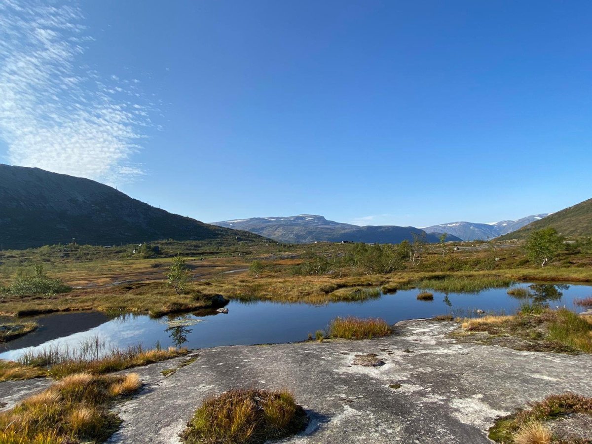 Dost lidí se podivovalo, proč jedeme se ségrou teď do Norska. Nebude tam už zima? A nechtěly jste s Julčou radši k moři původně? No jo...moře to není. Ale i tady jsme jen v tričku a je nám vážně fajn. Ve stínu je teda zima...respektive je na svetr. Ale na sluníčku je to na opalovačku :)! Samozřejmě jsem se klasicky opět vystavovala sluníčku výhradně ve slunečních brýlích a tak jsem na konci dne opět vypadala jako mýval. Ne..nikdy se nepoučím. Navíc mi hřeje na srdci vědomí, že v Praze je teď zrovna zima a prší. Jo..je to zlý. Ale myslím...nebo chci aspoň věřit, že to takhle má každej. Že všichni tak nějak doufáme, že když my zrovna budeme na dovče, bude doma hnusně :D. Hlavně aby to nebylo naopak :D