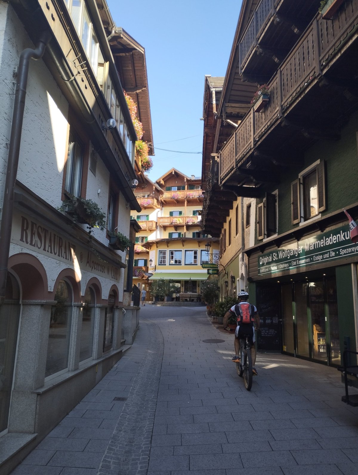Wolfgangsee je prostě srdcovka, ale člověk musí trochu vědět, do které části jezera stojí za to vyrazit. Na procházku je krásné městečko St Wolfgang im Salzkammergut s tradiční Rakouskou architekturou, úzkými uličkami, krásným kostelem a náměstíčkem přímo na břehu jezera. Na toto městečko jsou krásné výhledy i z vodní hladiny, nicméně voda je v této oblasti temnější a nepůsobí tak přitažlivě, jak je skoro celém Attersee. Proto pádlujeme směrem ke skalní stěně Falkensteinwand, která je opravdu monumentální a tyčí se přímo z vody do výšky okolo 200 metrů. Okolo je spousta útesů, ze kterých se dá skákat do vody a malý malebný ostrůvek s věžičkou. Navíc je v této oblasti opravdu krásně čistá voda, ve které si připadáte spíše jako u moře, než u jezera.