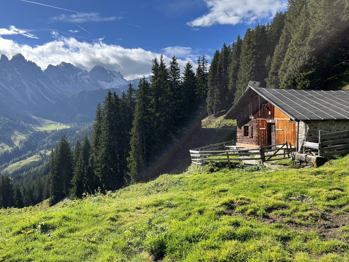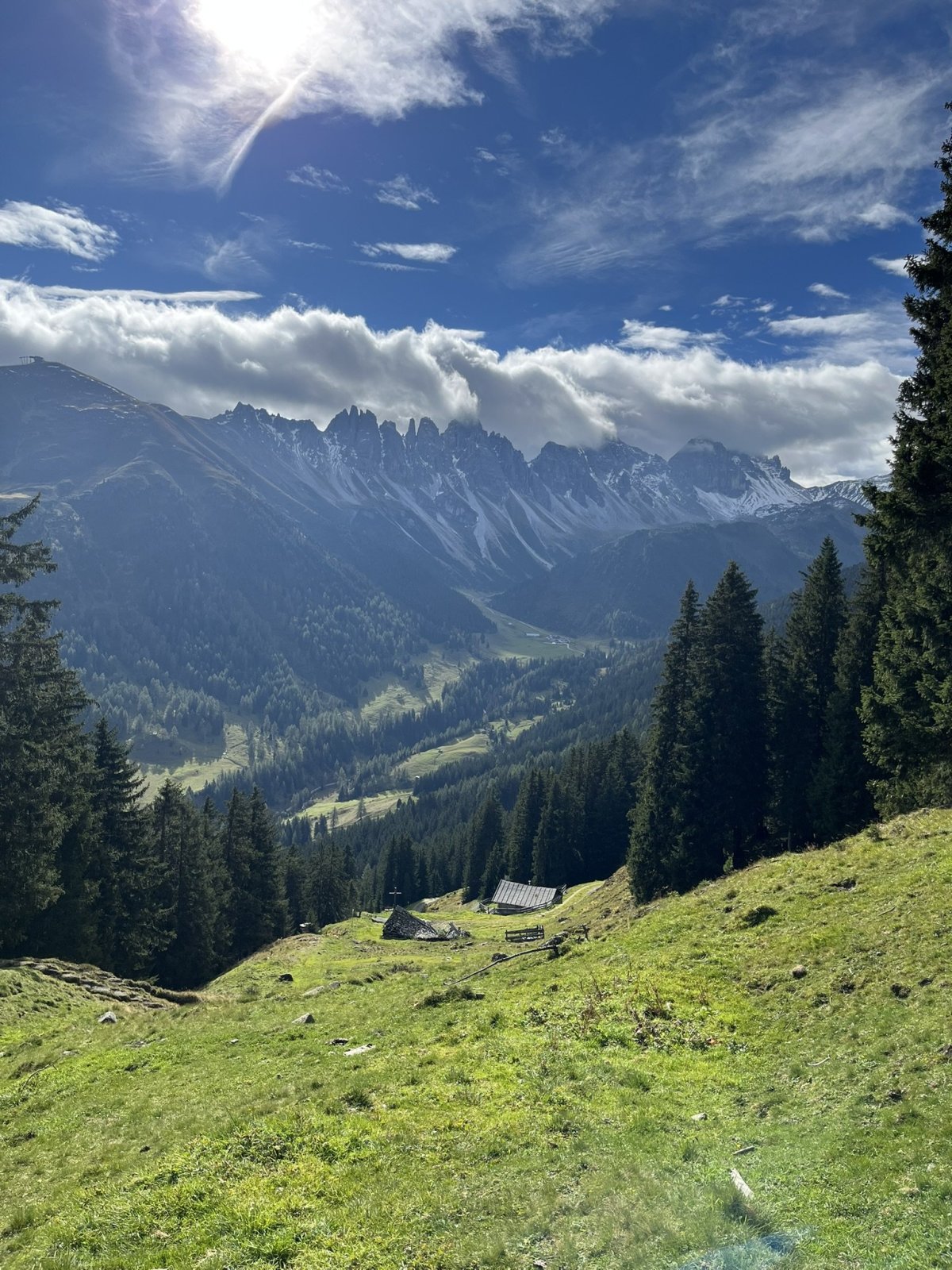 První výlet vedl k jezeru Salfeiner See. Autem zaparkujete na Parkplatz Salfeinersee, které je asi 25 minut daleko od ubytování, musíte zaplatit poplatek 5 EUR v automatu (kartou i hotově-mincemi), my jsme na místě byli okolo 9:00 ve všední den a byla tam jenom dvě další auta. Jezero vypadá naprosto epicky na fotkách, ale cesta k němu není úplně zadarmo, čekají na vás 4 km poctivého výšlapu do kopce, ale zase překrásné výhledy, cca v polovině cesty i hezká horská chaloupka, která ale byla zavřená. Cestu nahoru zvládnete s několika přestávkami do 2 hodin (na Google recenzích píše pán s operovanými koleny, že to zvládnul za 1:20 h) a nahoře vás už čeká výhled na jezero - spíš na jezírko, Salfeiner See je asi jedno z nejmenších jezer, které jsem kdy viděla.