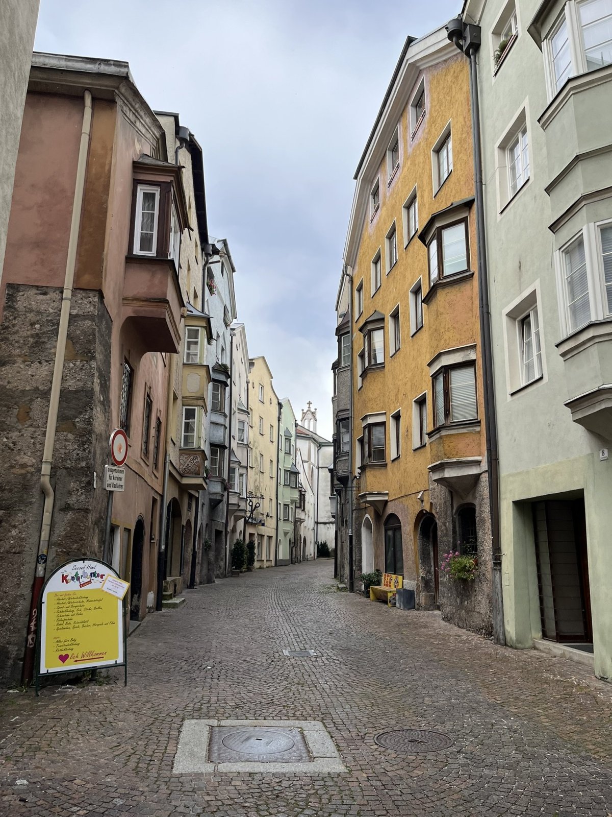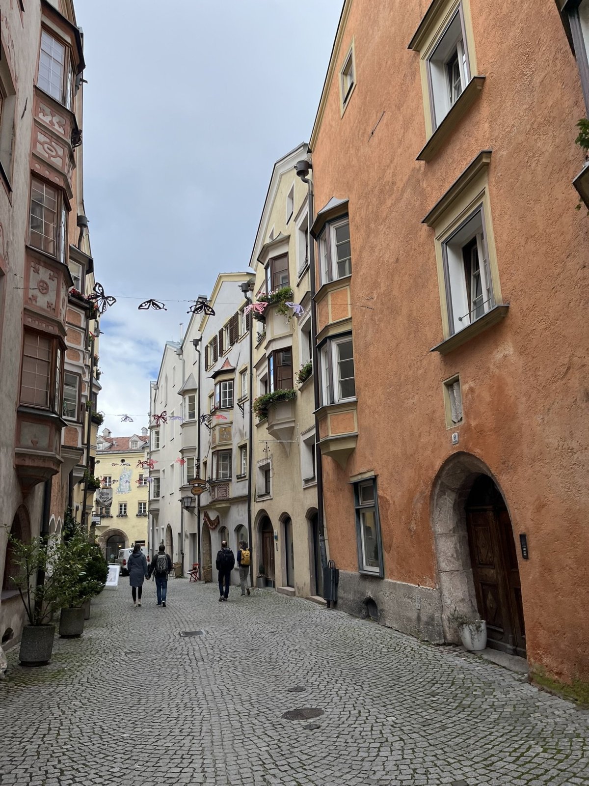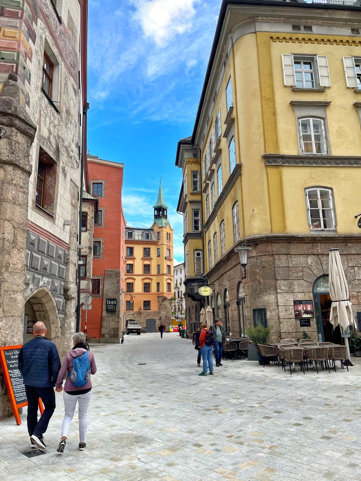 Jak je Innsbruck hezký z 2 000 metrů nad mořem, tak je ještě hezčí, když jím procházíte. Nádherné uličky a barevné domy na každém rohu, kýčovitě modrá řeka a ne tak strašné množství turistů z něj dělají město, ve kterém chcete okamžitě žít a do kterého jsme se museli vrátit znovu další den. Centrum je relativně malé a projdete ho do hodiny včetně focení, doporučuju jít cestu: Nordkette dolní stanice → katedrála Dom St. Jakob → slavná zlatá střecha Goldenes Dachl → náměstí a věž Stadtturm → sloup Annasäule → vítězný oblouk Triumphpforte → zpátky okolo řeky Inn, zastavit se u Aussichtspunkt Marktplatz → vidět barevné domečky "Colourful Houses Innsbruck" → projít okolo mostu Innbrücke a přes park na parkoviště.