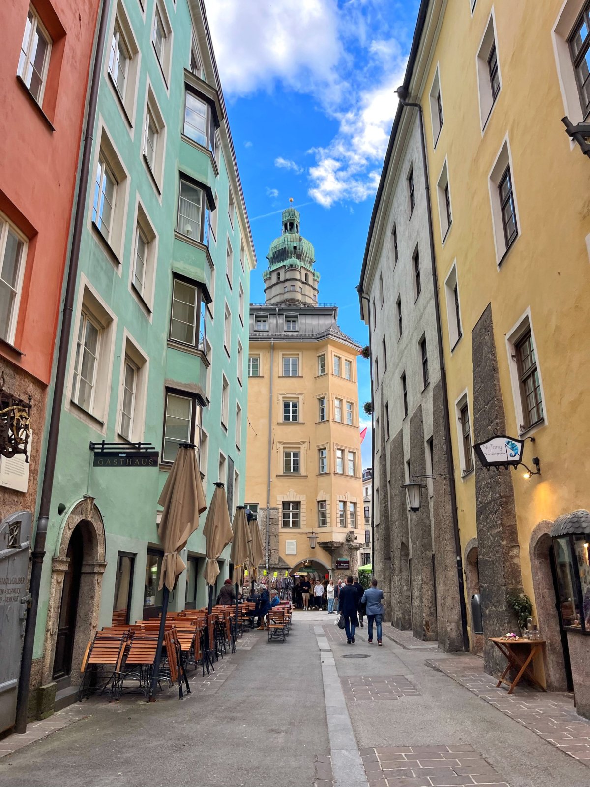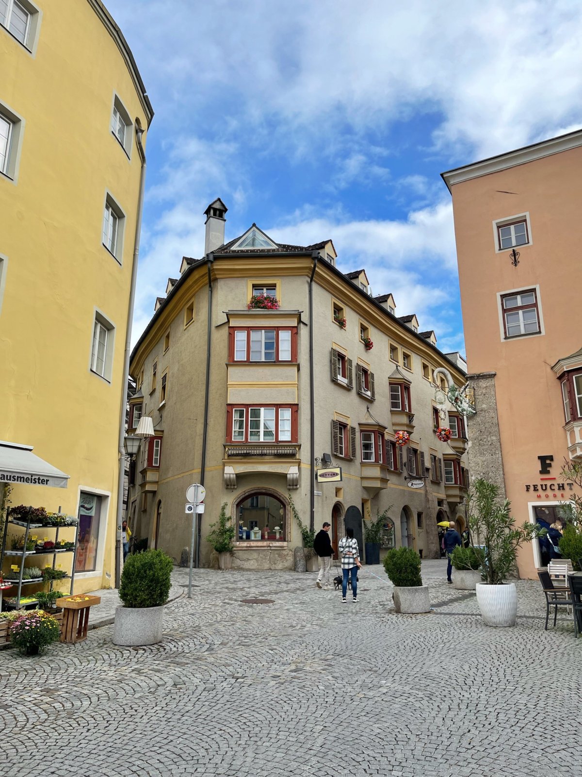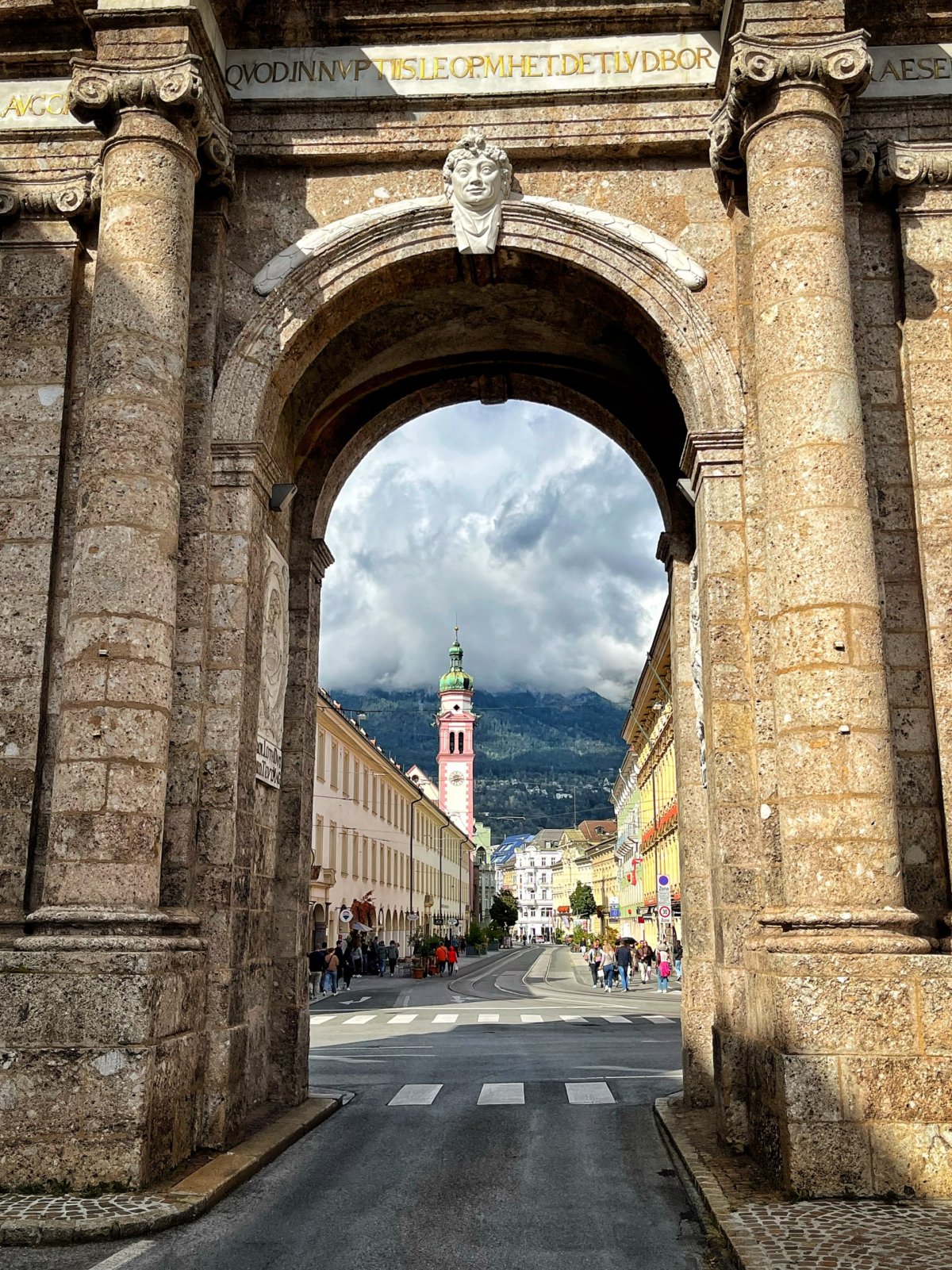 Jak je Innsbruck hezký z 2 000 metrů nad mořem, tak je ještě hezčí, když jím procházíte. Nádherné uličky a barevné domy na každém rohu, kýčovitě modrá řeka a ne tak strašné množství turistů z něj dělají město, ve kterém chcete okamžitě žít a do kterého jsme se museli vrátit znovu další den. Centrum je relativně malé a projdete ho do hodiny včetně focení, doporučuju jít cestu: Nordkette dolní stanice → katedrála Dom St. Jakob → slavná zlatá střecha Goldenes Dachl → náměstí a věž Stadtturm → sloup Annasäule → vítězný oblouk Triumphpforte → zpátky okolo řeky Inn, zastavit se u Aussichtspunkt Marktplatz → vidět barevné domečky "Colourful Houses Innsbruck" → projít okolo mostu Innbrücke a přes park na parkoviště.