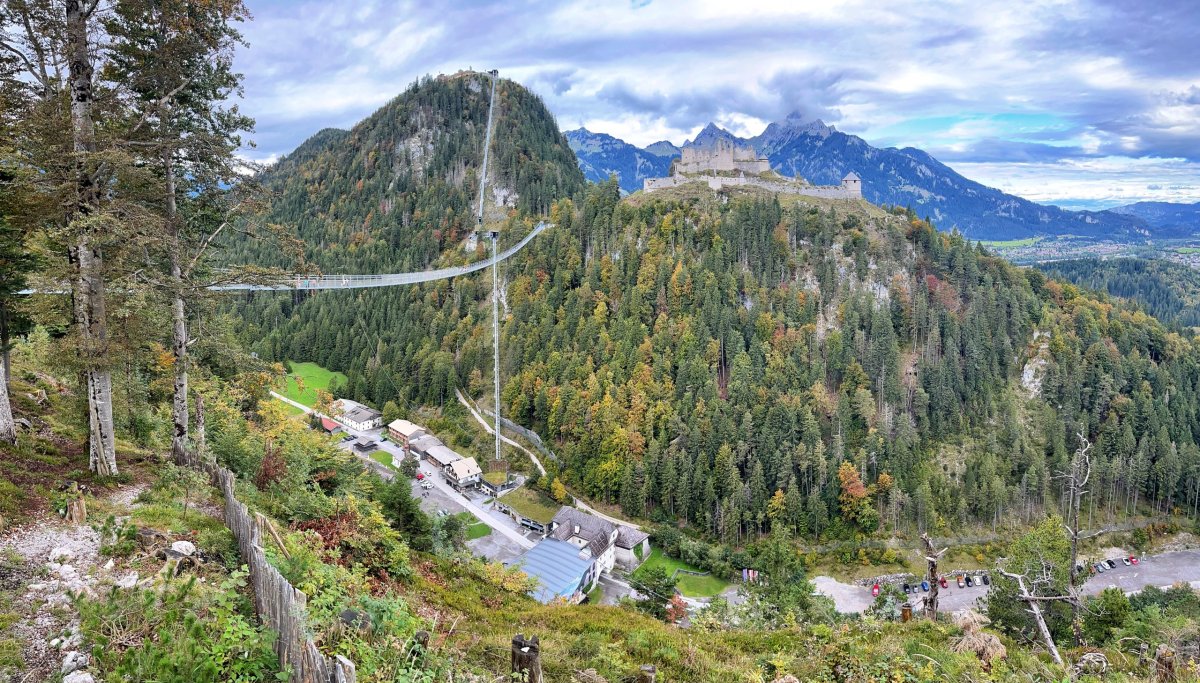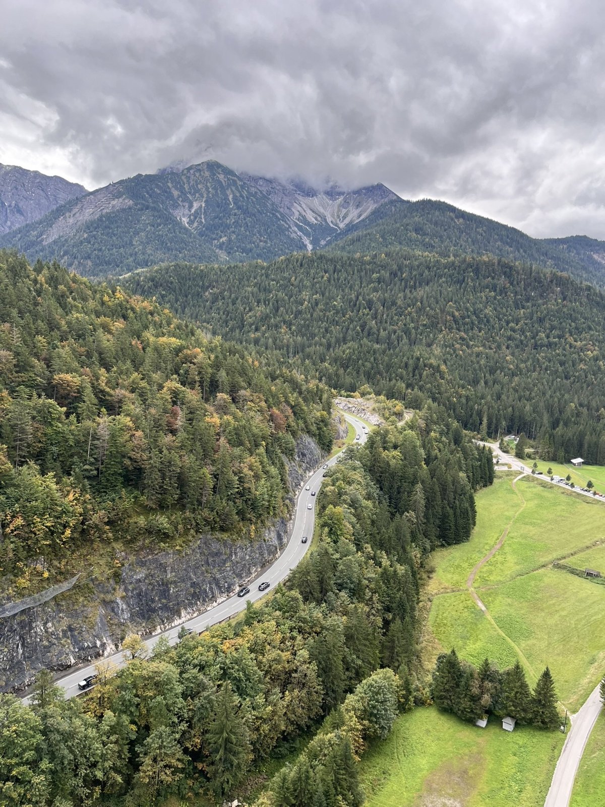 Highline 176 (https://www.highline179.tirol/) je jeden z nejdelších lanových mostů v Evropě, visí ve výšce 110 m a je přes 400 metrů dlouhý, spojuje hrad Ehrenberg a protější kopec. Cesta pod most trvala autem od ubytování okolo 1,5 hodiny a po cestě se můžete kochat například Schloß Fernstein, Fernsteinsee nebo si odpočinout na parkovišti u Rasthaus Zugspitzblick a kochat se krásným výhledem na hory a Blindsee.