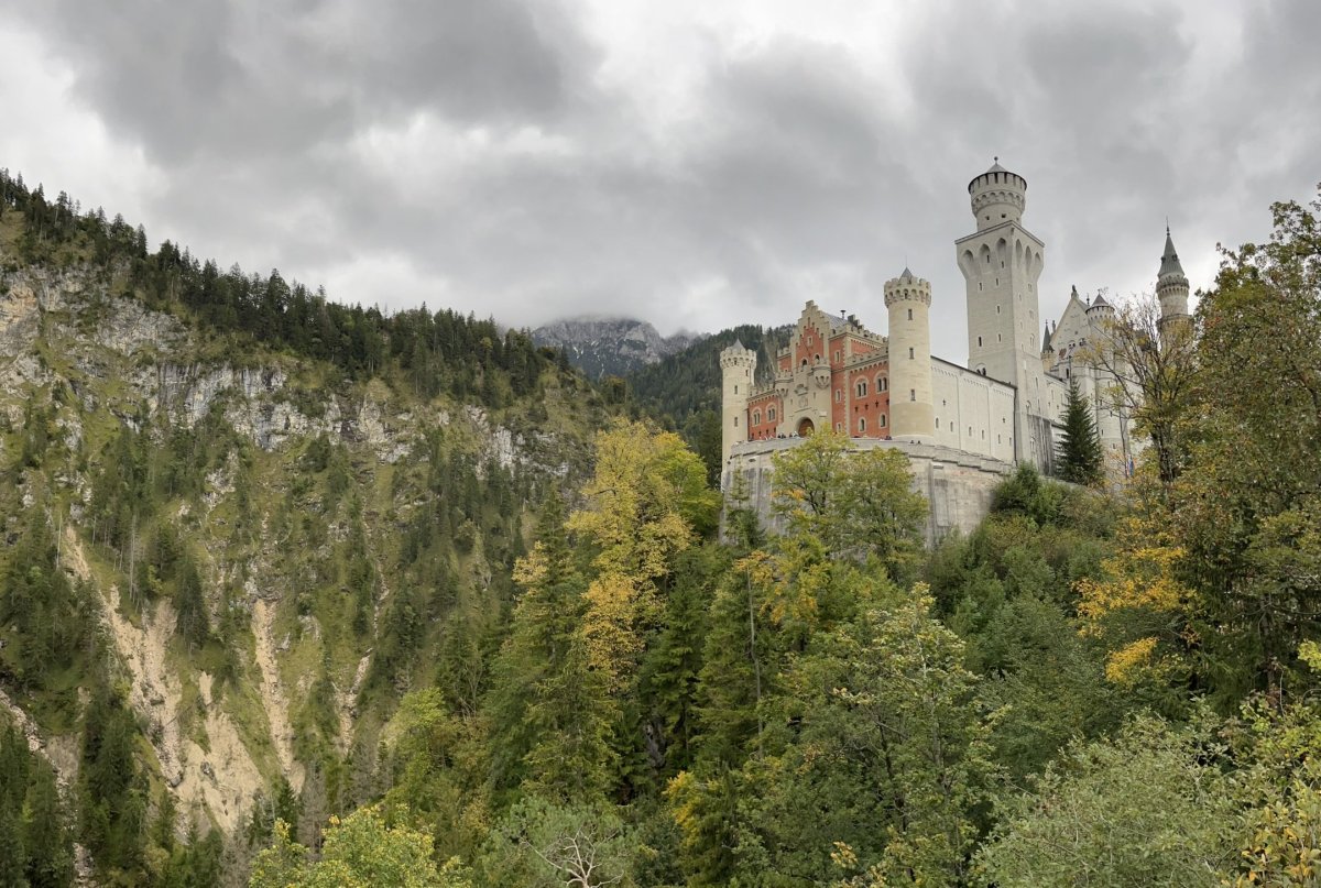 Zámek Neuschwanstein je podle mě známý asi jako Eiffelovka, ta to ale myslím nedotáhla tak daleko jako inspirace pro Disney. Na mém neexistujícím bucket listu bylo tohle místo už docela dlouho, ale vždycky mi přišlo, že je zbytečně daleko - tak teď se konečně povedlo ho navštívit. Zaparkovali jsme na skoro plném parkovišti P3 Parkplatz (Alpseestraße 1, 87645 Schwangau, Německo) za myslím 12 EUR, a potom jsme se vydali lesní cestou asi 20 minut nahoru pěšky k zámku. Dostat se tam můžete i z jiných parkovišť, dokonce nabízejí i svezení koňským povozem za 4 EUR/zpáteční cesta.