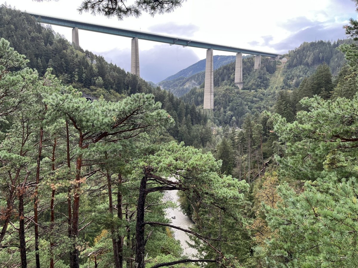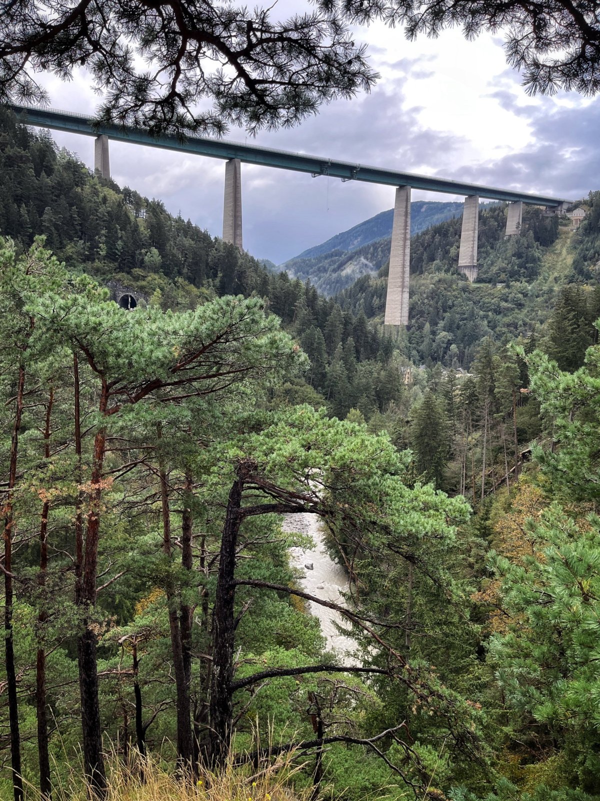 Europabrücke je součástí silnice A13, která spojuje Rakousko s Itálií a zároveň je obří dopravní stavbou, dlouho se most pyšnil nejvyšším pilířem (146,5 metrů) v Evropě. Můžete se k němu projet a pozorovat ho z vyhlídky Aussichtsplattform Europabrücke nebo jako my se můžete vydat po staré cestě do Itálie a zastavit na autobusové zastávce (což vám rozhodně neradím a samozřejmě jsem tam nikdy nebyla), která je na mapě označená jako Unterberg im Wipptal Abzw Sillwerk a vidět ho z jiné perspektivy. Pohled je to víc než zajímavý, ale moc se tam nezdržujte, jinak vás taky vyžene přijíždějící autobus. Další den jsme už jenom jeli zpátky domů a děkujeme, Rakousko, že jsi tam připravilo super počasí, i když nemělo být vůbec hezky, přijedeme zas ♥ Itinerář celé cesty najdete níž ↓