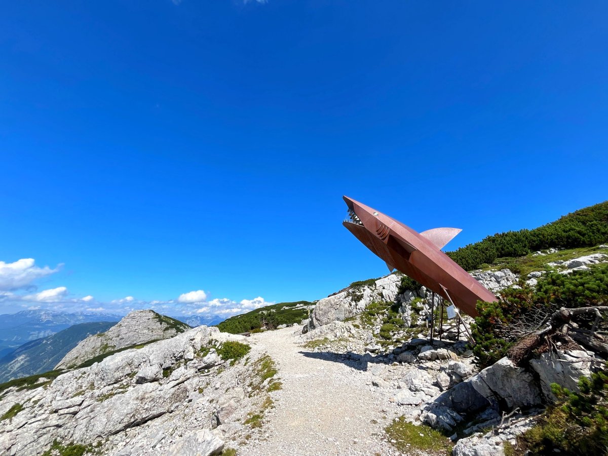 • Lanovkou do druhé stanice navštívit: 5 Fingers, World Heritage Spiral (Welterbespirale), Pionierkreuz, kapli Heilbronner Kapelle , žraloka Dachstein Hai, Däumelsee