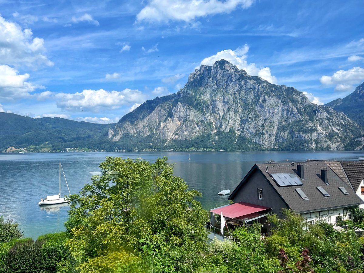 Prodloužený víkend v Rakousku se psem, kam jsme výjimečně jeli vlakem - krásné okolí Bad Ischl, návštěva Hallstattu a výlet zubačkou na Schafberg. A možná tam potkáte i žraloky.