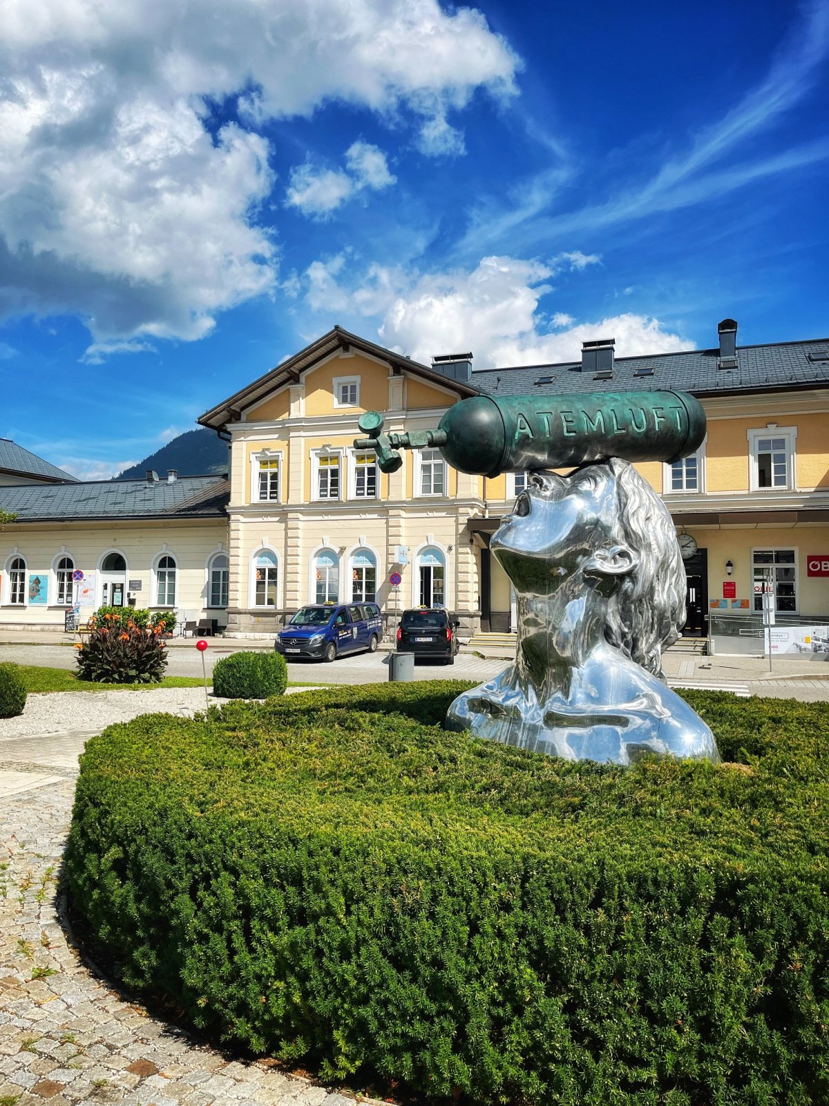 Ve Vídni jsme druhý den odjížděli z Wien Westbahnhof vlakem do Attnang-Puchheim (cesta trvá necelé 2,5 hodiny), kde jsme přestoupili na ÖBB/OÖVV vlak směr Bad Ischl, kam jsme za 30 minut pohodlné jízdy se skvělými výhledy na jezera a hory dorazili, lístek stál 11,50 EUR + 1,80 EUR za psa. Lístek na vlak z Wien Westbahnhof je určitě lepší kupovat minimálně 4 dny dopředu, aby vás nestál 50 EUR jako mě, když jsem ho kupovala večer předem, ehm, ale jenom 33 EUR (+ 2 EUR za psa), zpáteční cesta mě tak vyšla jenom na 35 EUR. Všechny vlaky, kterými jsme jeli, jely na čas, měly klimatizaci, záchod a některé i občerstvovací automaty.