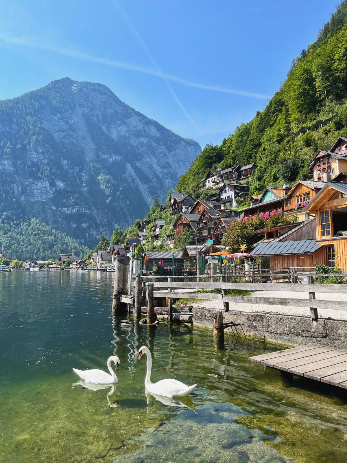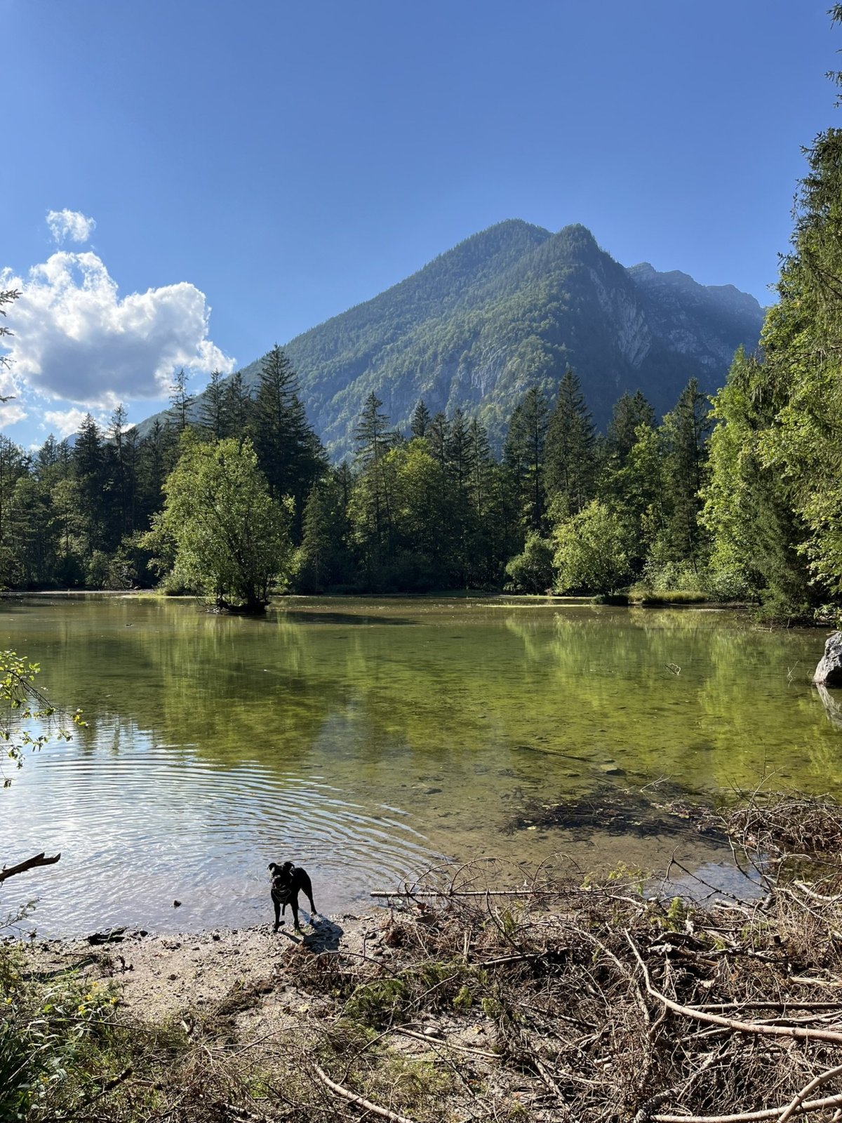 To nejlepší z Hallstattu uvidíte pokud půjdete vpravo od výstupu z lodi a asi po 3 minutách chůze narazíte na vyhlídku, ze které si všichni fotí tu nejznámější fotku Hallstattu, ano, i já! Prosím respektujte, že všude okolo v těch krásných domech bydlí lidé, není potřeba dělat hluk a ječet na fotkách, stejně vás nikdo neuslyší, přátelé. Projděte se zpátky přes hřbitov dál do centra Hallstattu, pokochejte se Hallstätter Wasserfall, osvěžte sebe i psa v jezeře Hallstätter See (třeba tady https://maps.app.goo.gl/dG4Ag2JSpg2w7qU46) a vyjděte si na procházku do lesa, pokud máte hodně času, tak se vydejte směrem k řece, na konci vás čekají i vodopády - je to docela milý únik od turistů a v létě od šíleného tepla. Pokud zvládáte, tak se vydejte lanovkou nebo pěšky nahoru k solným dolům Salzwelten Hallstatt, vyfoťte se na vyhlídce Hallstatt Skywalk Welterbeblick Aussichtsplattform a užijte si pohled na jezero Hallstätter See. My jsme neměli tentokrát tolik času, spokojili jsme se s procházkou do lesa. Přidávám si další položku na bucket list - vidět zasněžený Hallstatt v zimě, musím říct, že je tam fakt krásně.