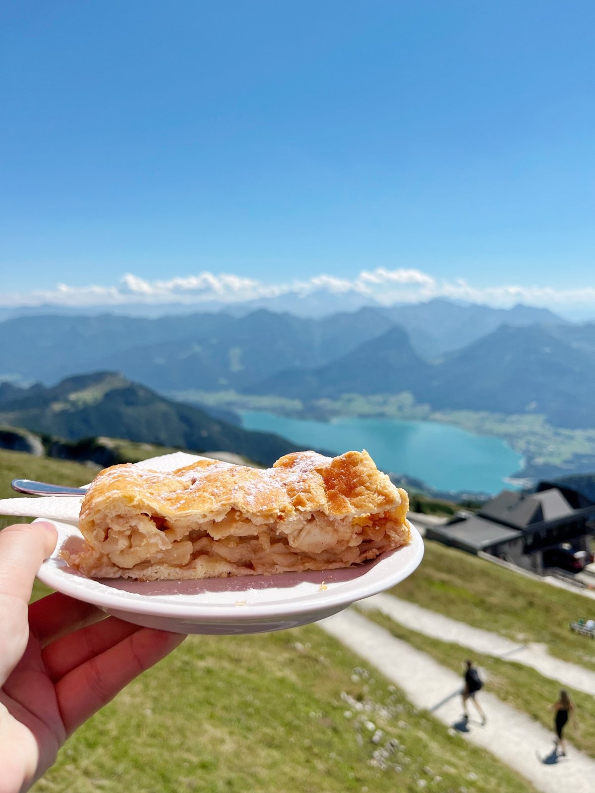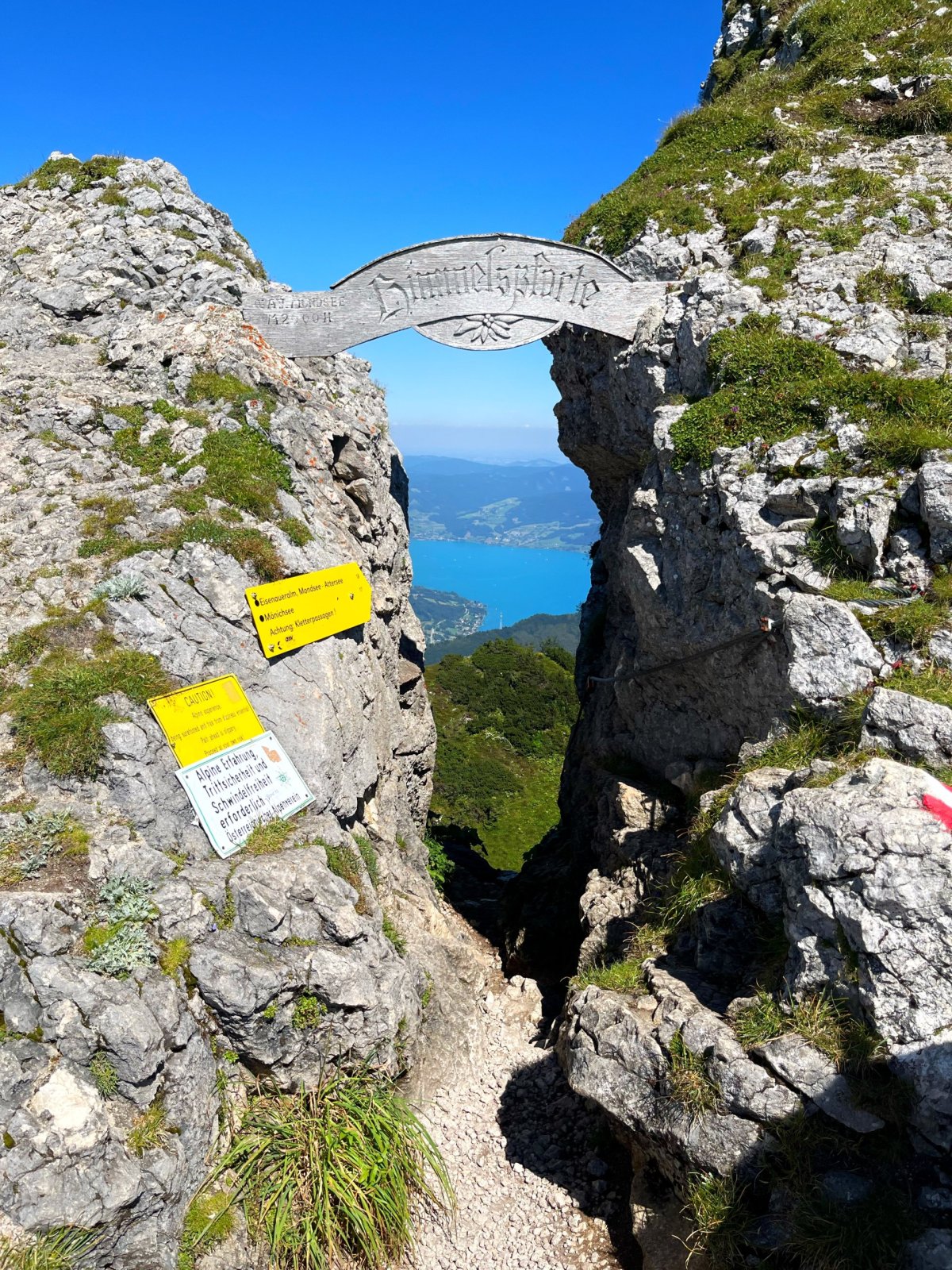 Letos jsme měli víc času prozkoumat okolí a pod Gaststätte Himmelspforte jsme se dali doprava a viděli tak kříž, "bránu" a měli zase o něco lepší výhled na okolní hory a jezera. Taky jsme se vydali na procházku na vrchol poblíž, kde už mi trochu trnuly nejenom zuby z té výšky - se psem jsem se neodvážila až na konec, ale někteří členové výpravy to skoro zvládli, zážitek je to velký. Den jsme zakončili v naprosto tragické restauraci Taverna Corfu Bad Ischl, na kterou je i jedna hvězdička moc, běžte radši do Mekáče a snězte si to u řeky na lavičce, vyzkoušeno za vás.