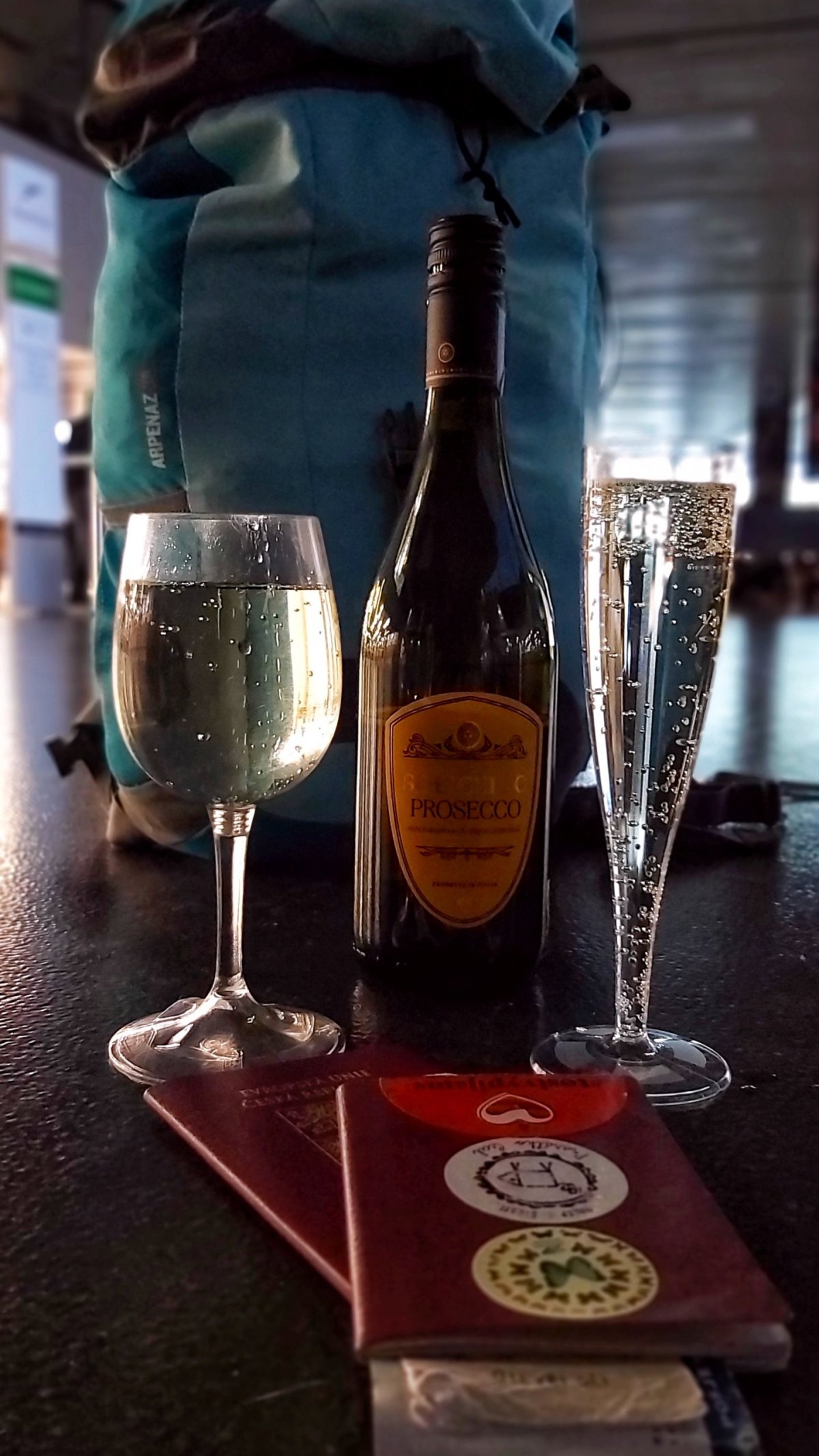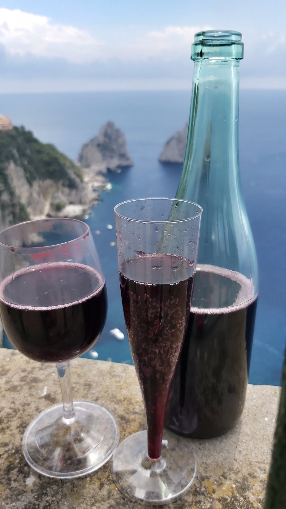 Prosecco nesmí zteplat, to je zásada. Teplé prosecco je totéž co vylitá sklenice vína. Stejná pohroma jako když dítěti na pouti uletí balónky! Takže koupíme-li bublinky, jsme na ně obvykle dvě, což jsou necelé 2 sklenice na osobu. Když chceme víno cestovní (třeba na Capri), koupíme kdejaký levný patok (2€ max) a pak (toto teplé víno za KAČKU) ředíme studenou vodou. Nejlépe z fontánek, samozřejmě.