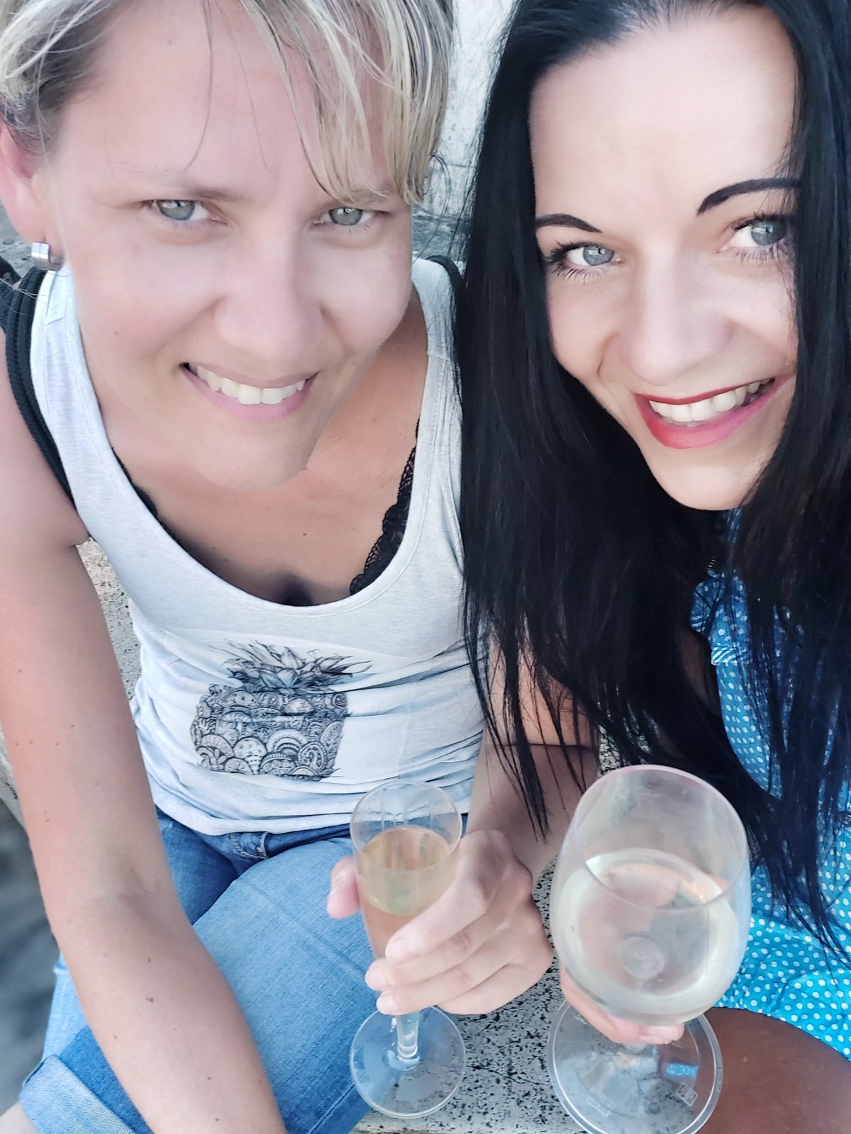 Myslím, že za den vypijeme asi 2 láhve. Skleničku na krásný nový den, jednu dopoledne, jednu v poledne, pak na nějakém pěkném místě (vyhlídka, park..) A dvě skleničky večer. Udržujeme tak kontinuální pozitivní přístup i k negativním věcem, řekla bych nadhled, ale přitom se nikdy neopijeme, protože při vší té chůzi a vůbec délce našeho bdělého cestovního dne - 20 hodin - je to jak když plivne.