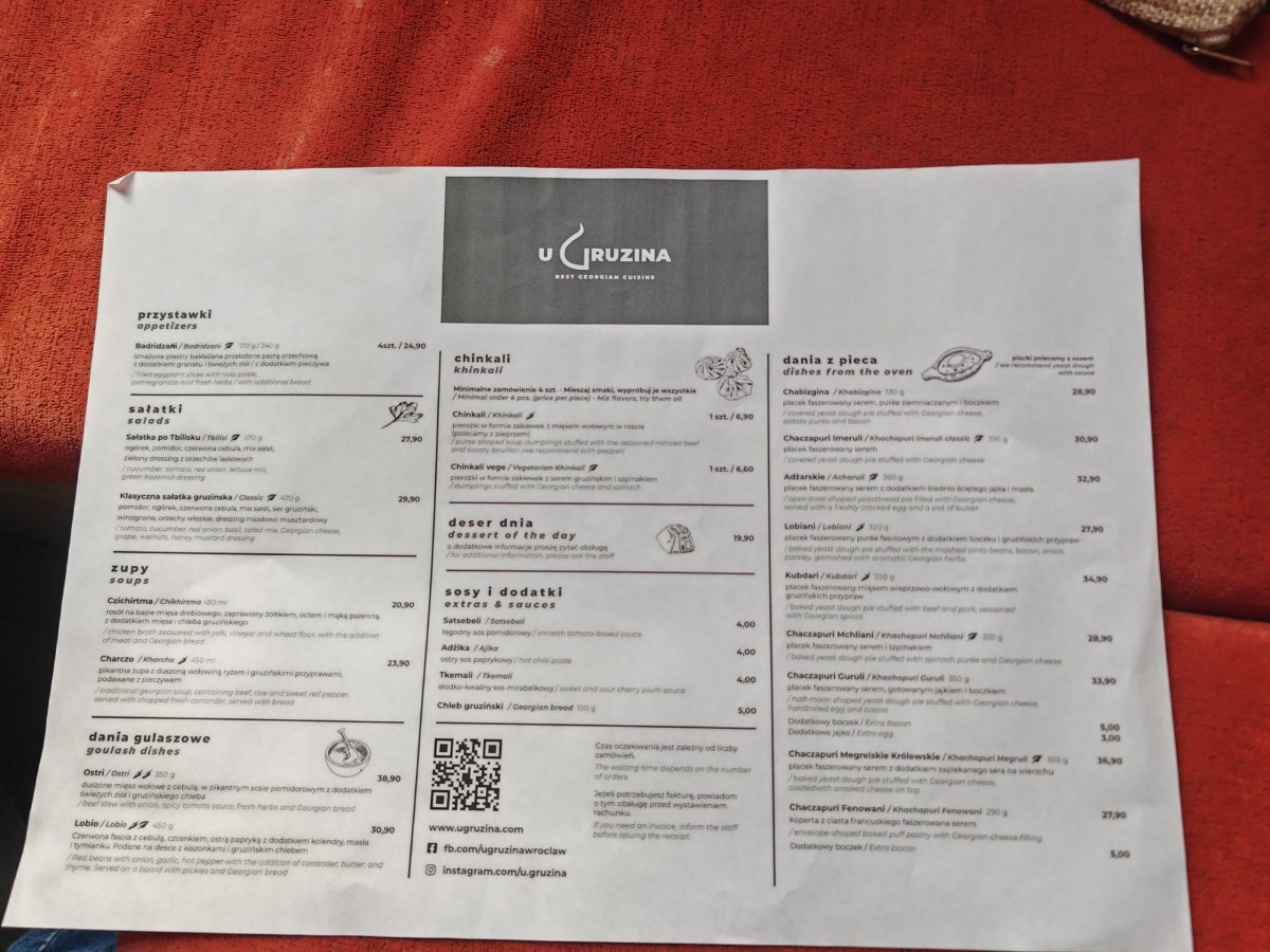 U Gruzina Restaurant. Wojciecha Bogusławskiego 35 35, 50-023 Wrocław, Poland Polévka Charczo 135kč, Guláš Ostri 223kč, Limonáda Wanilia i smietanka 105kč.