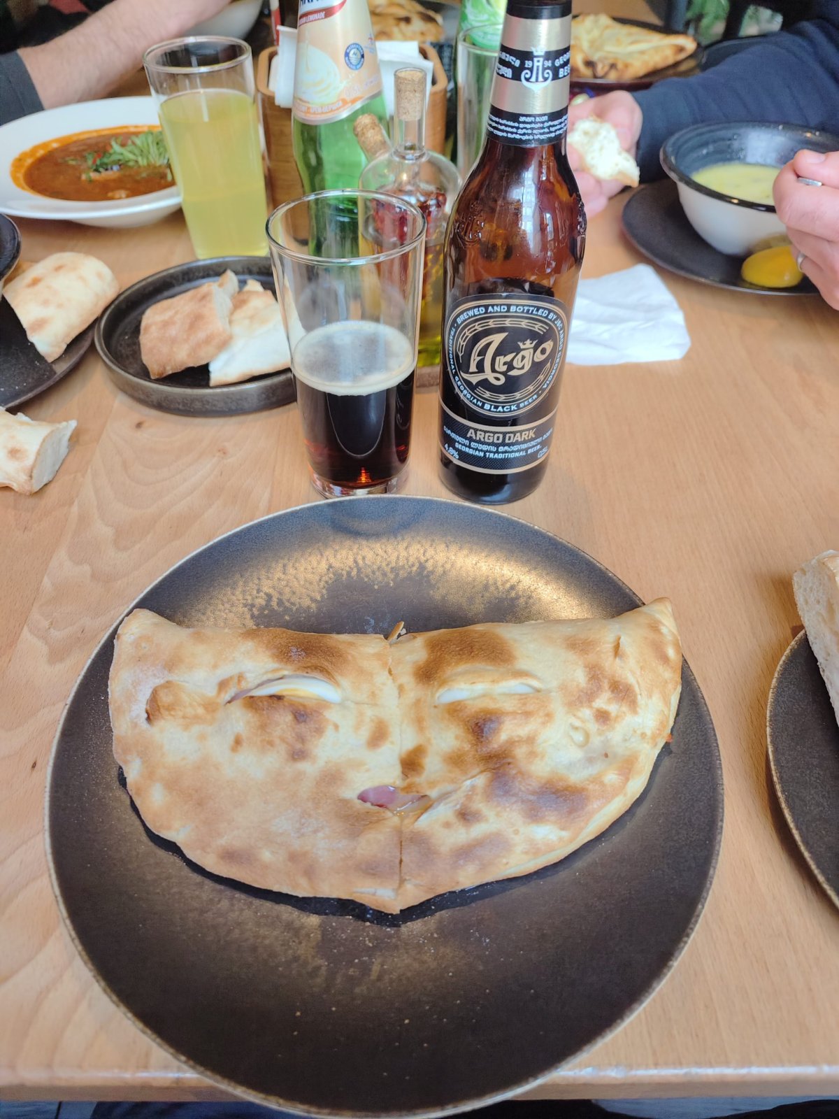 V gruzínské restauraci jsme byli jediní. Na to, že byla neděle a doba oběda, a je pravda, že teprve ve 12:00 otevírali, když jsme tam přijeli, jsme ještě pět minut stáli venku, než otevřeli. Uvnitř byly dvě mladé slečny jako obsluha, které to měly tak nějak na háku. Po objednání nám přinesly vše najednou jak polévky tak i hlavní Chody, takže než jsem snědl polévku guláš vychladl. Pořád na telefonu a neobsluhovaly ani jen donesly jídlo a tím to skončilo. Objednal jsem si jejich polévku, jejich guláš a jejich vanilkovou limonádu. Kluci si objednali polévku a jejich placky plněné. Mě moc nelákaly vzhledově, guláš z polévkou byl celkem dobrý, ale chutnalo to téměř stejně a bylo to ochuceno stejným kořením. Nejlepší co pak bylo úplně pecka byla jejich vanilková limonáda ta fakt neměla chybu. Placku jsem ochutnal, ale nezaujalo. Klukům chutnalo. Jídlo jsme snědli pití vypili stále se nás nikdo nevšímal a dvě holky za barem se tam chichotaly a byli na telefonech, tak jsme došli k nim, že bychom rádi zaplatili. Tak jsme teda zaplatili a pokračovali dál v cestě domů. Jsme dorazili po třetí hodině odpoledne do Chrastavy a určitě se někdy zase vrátíme do římských Lázní.
