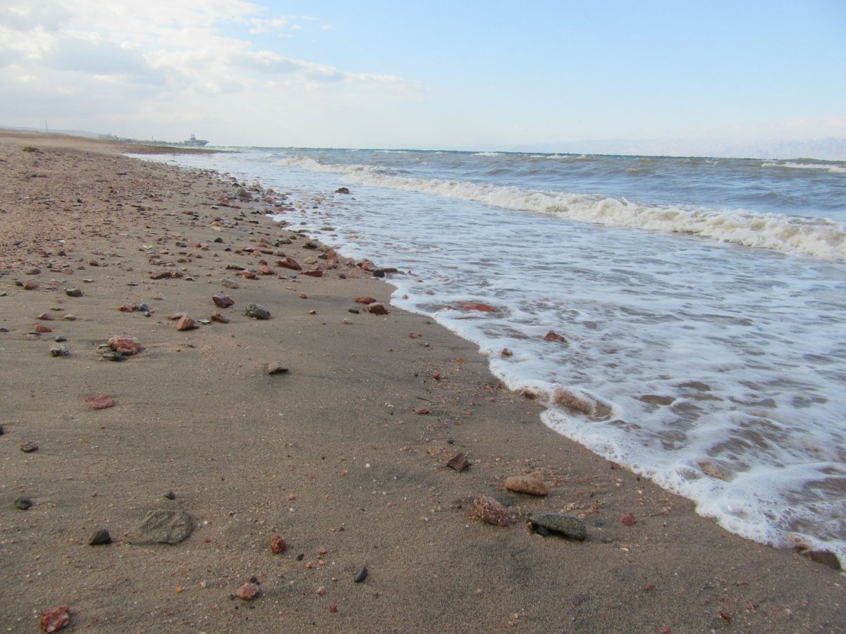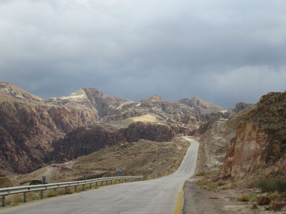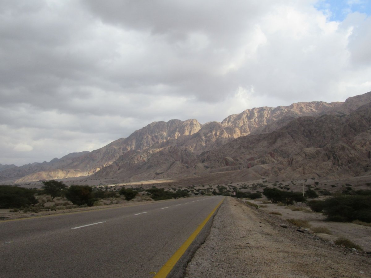 Následující den po brzké a vydatné snídani se jedeme podívat po pobřeží až k Saudské Arábii, pláže pěkné, ale v lednu ne úplně na koupání. Pak se vracíme a podél hranice s Izraelem jedem pouští, kde čas od času je pár obydlí beduínů a pravidelné strážní věže. Postupně přibývá zeleně a dostáváme se k odbočce na pohoří Dana. Jedeme asi 10km nahoru k vrcholům a kocháme se krajinou a nádhernými výhledy - pak se vracíme a pokračujeme podél celého Dead Sea po Jordan Valley Hwy směrem na Ammán, kde pak odbočujeme směr Mount Nebo a přes Makabu na letiště. Auto vracime bez problémů, rychlé a korektní jednání - nemuseli jsme ani platit 3h navíc, což jsme kvitovali.