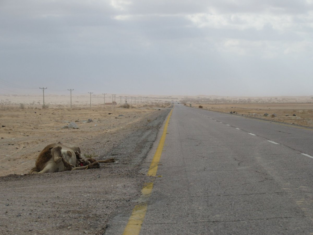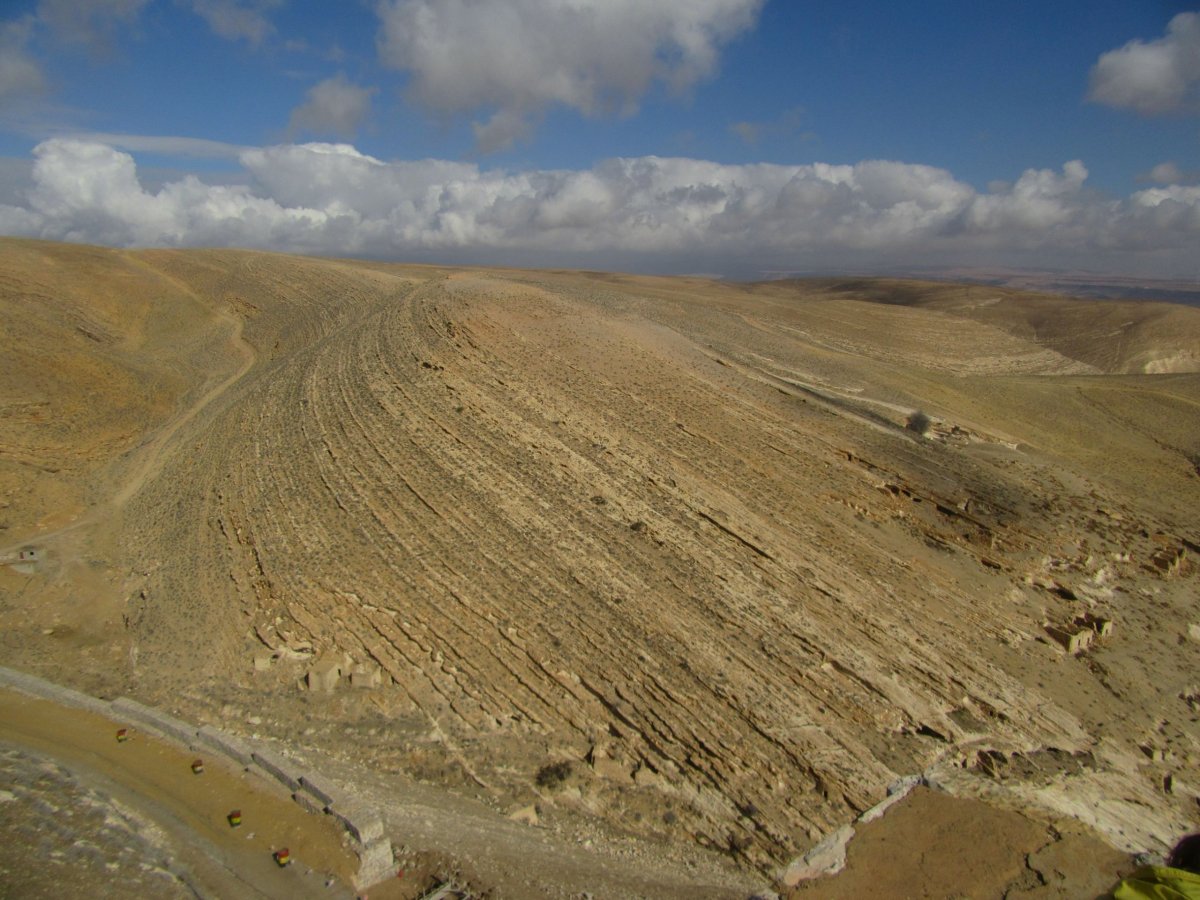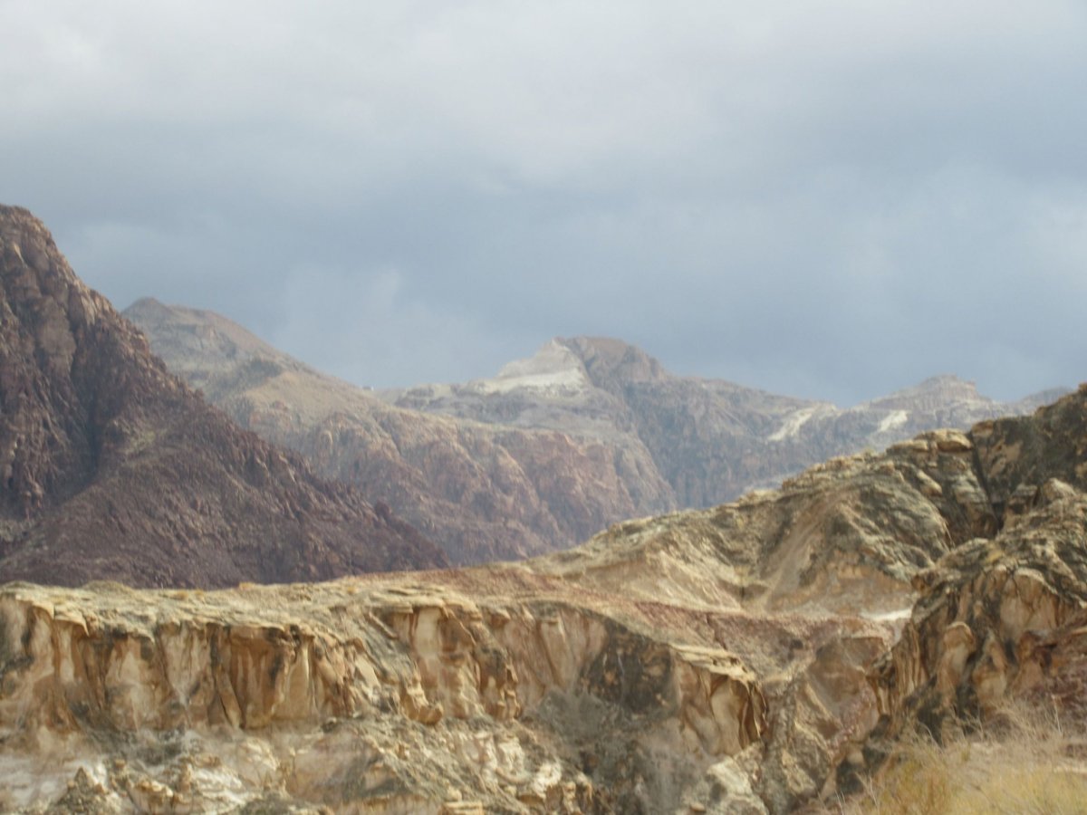 Následující den po brzké a vydatné snídani se jedeme podívat po pobřeží až k Saudské Arábii, pláže pěkné, ale v lednu ne úplně na koupání. Pak se vracíme a podél hranice s Izraelem jedem pouští, kde čas od času je pár obydlí beduínů a pravidelné strážní věže. Postupně přibývá zeleně a dostáváme se k odbočce na pohoří Dana. Jedeme asi 10km nahoru k vrcholům a kocháme se krajinou a nádhernými výhledy - pak se vracíme a pokračujeme podél celého Dead Sea po Jordan Valley Hwy směrem na Ammán, kde pak odbočujeme směr Mount Nebo a přes Makabu na letiště. Auto vracime bez problémů, rychlé a korektní jednání - nemuseli jsme ani platit 3h navíc, což jsme kvitovali.