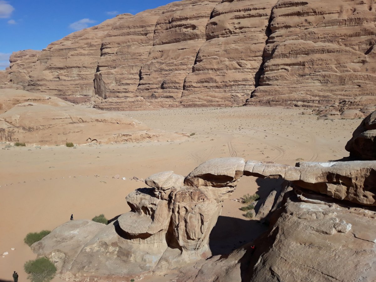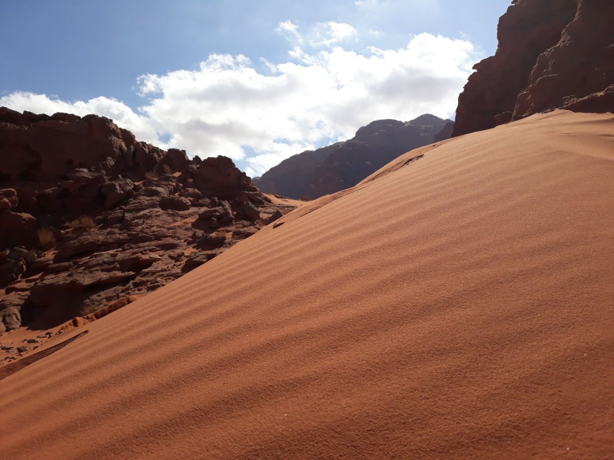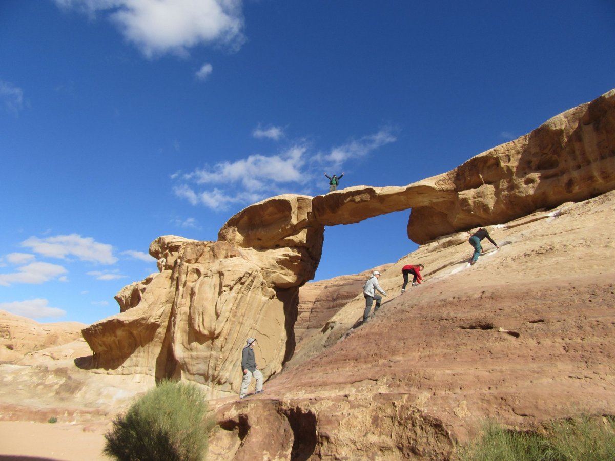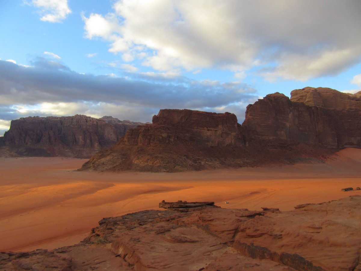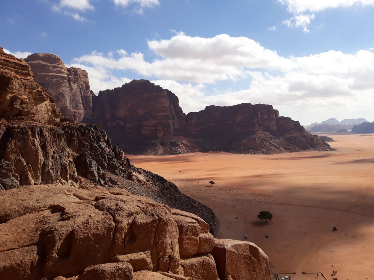 Ráno po snídani, kolem 7h, jedeme již směr Wadi Rum, další "must see" bod naší cesty. Prijíždíme kolem 10h, vstup je na Jordan Pass, ale autem se max dostanete přes visitor centrum do Wadi Rum village. Pak již jen pěšky nebo si dát tour jeepem s beduínem. Je mnoha alternativ, vše je řízené státem, tudíž ceny jdou fixní a tourist police dbá, aby se vše dodržovalo jak má. Bereme si nejdelší tour na celý den - cca 8h - cena 80 JOD za jeep (tady se vyplatí čím víc Vás bude tím levněji, ale turistů moc nebylo a nechtělo se nám ztrácet čas čekáním jestli se někdo přidá). Provázel nás beduín co uměl slušně anglicky (Abdulah - provází kolem 30 let a má i kemp s velmi přívětivými cenami, případně mohu poskytnout kontakt, dělá i další túry po okolí), ukázal nám i hodně míst, kde jsme nenarazili na turisty, počasí bylo super - 10-15 C, slunečno, ideální na lezení po skalách. Váhali jsme jestli ubytování ve Wadi Rum nebo Aqaba, ale nakonec vyhrálo to, že jsme chtěli vidět Aqabu trochu v noci a obávali se noční teploty ve Wadi Rum, která klesala pod nulu a ve stanech by to nebylo úplně super.