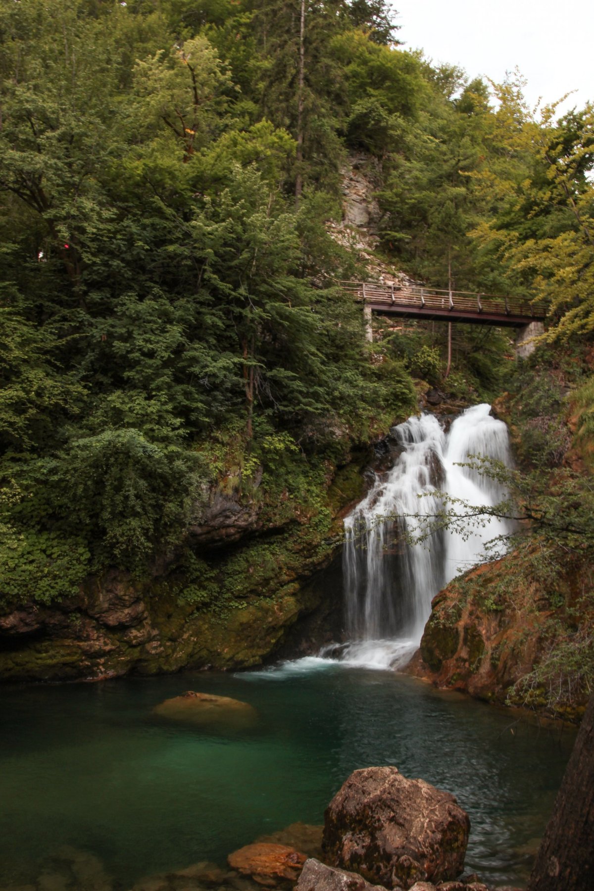 Ráno nám pršelo. Vlastně skoro celou dobu nám hlásilo počasí přeháňky, bouře a silné deště ale nakonec to zas tak strašné nebylo. Navlékli jsme pláštěnky a šli jsme se projít na vrcholek Mala Osojnica, odkud byl krásný výhled na ostrůvek uprostřed Bledského jezera. Stezka je nenáročná, je to stoupák ale oproti Schafbergu už to byla brnačka která nám zabrala asi půl hodinky. Cesta je zajištěná řetězy a zakončují jí schody. Odpoledních několik hodin jsme přečkávali na výše zmíněném odstavišti. Bylo to jediné místo u celého Bledu, kde bylo parkování "možné" zadarmo. Když přestal ten největší slejvák rozhodli jsme se, že navštívíme opěvovanou soutěsku Vintgar. Je to jedna z největších turistických atrakcí v parku, takže vstup byl zpoplatněn pro studenty 7€/ osoba pro dospělé tuším 10€/osoba. Skupina 10+ lidí by měla vstup o euro /osoba levnější. Zaparkovali jsme ve vesnici na betonovém plácku u silnice opět zadarmo. V soutěsce protékala opravdu nádherně čisťonká řeka Radovna a byla to fajn podívaná, ale neřadím to k mým nejoblíbenějším. Na závěru cesty hosty čeká hezký vodopád. Velké + je fakt, že se tato soutěska nachází jen pár kilometrů od Bledu, což nebyla žádná velká zajížďka. Na noc se vracíme do našeho oblíbeného odstaviště.