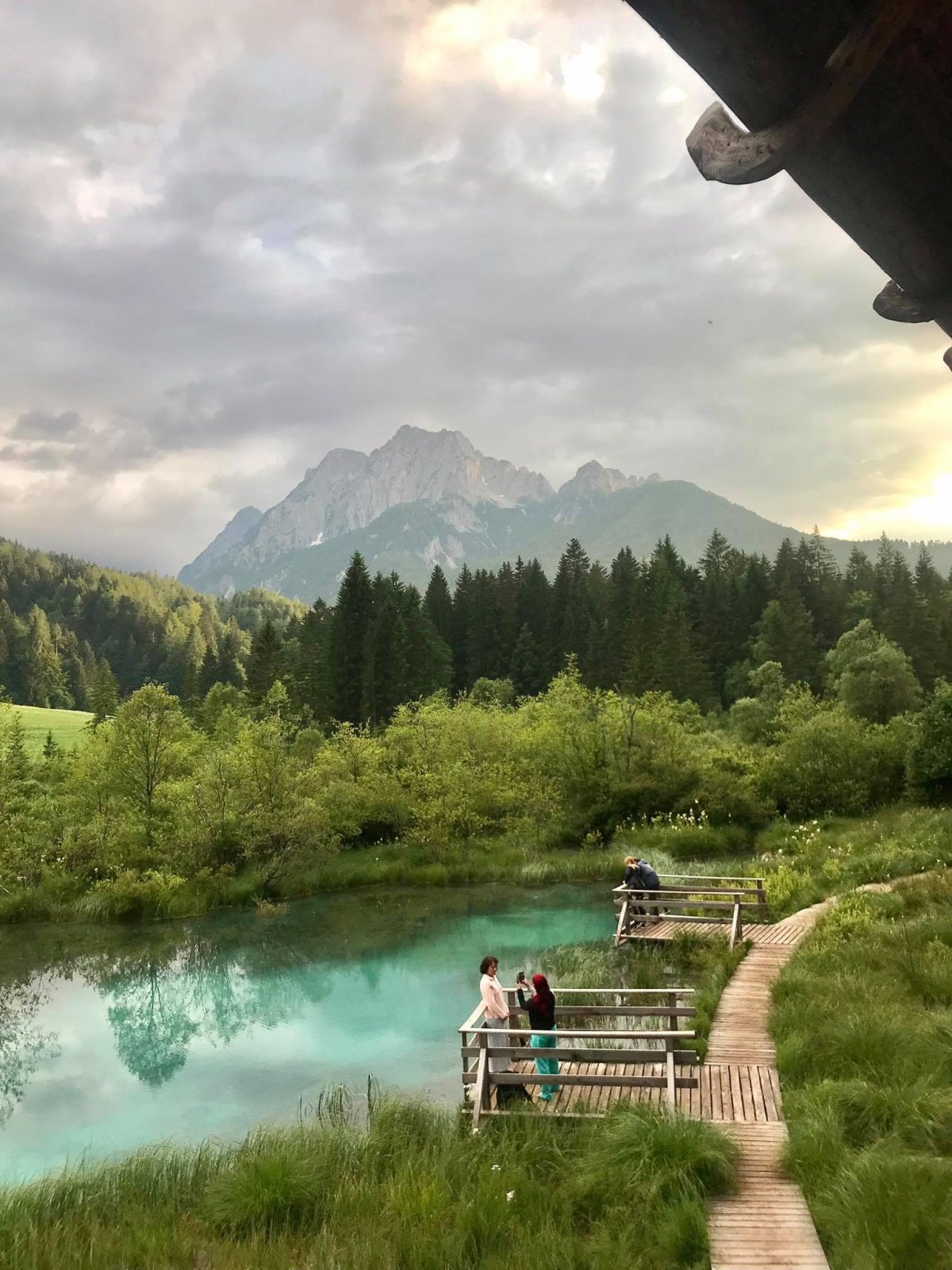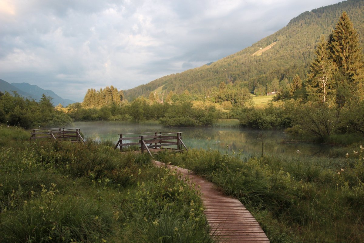 Po zaplacení pokuty nám zbývalo ještě celé odpoledne. Tak jsme se rozhodli, že místo truchlení ten čas využijeme lépe a zajedeme se podívat na jeden z největších vodopádů Peričnik. Turistů tu najdete jen po málu, což pro nás bylo velké překvapení neboť radši vyhledáváme trasy mimo davová šílenství. Zaparkovali jsme na veřejném neplaceném parkovišti , které bylo od místa přibližně 3 kilometry. Stejná trasa vede na oblíbené místo Triglav, největší Slovinskou horu. Jelikož nám opět pršelo, byli jsme vybaveni pláštěnkami a byli jsme za ně vděční. Pláštěnky bych určitě přibalila i za normálního počasí neboť vodopád má takovou sílu, že člověk nezůstane v suchu dlouho. Příjemné překvapení bylo, že se dá vodopád "podejít" zezadu a tudíž člověk získává i novou perspektivu. Moc hezké místo, které je kupodivu neplacené a zaujalo mě možná i víc, než předchozí. Při cestě nazpátek už jsme byli nervózní, jestli nás nebude u auta čekat další obálka ale naštěstí tentokrát vše bylo v pořádku.:) Tak jsme se vydali na poslední destinaci našeho roadtripu, jíž byla národní rezervace Zelenci. Tu jsme chtěli dát až druhý den dopoledne ale jelikož ještě nebylo pozdě a zjistili jsme, že je rezervace spíš stylem stop & go, neboť je kousek u cesty, tak jsme jí stihli ještě ten den večer. Zaparkovali jsme na bezplatném parkovišti. K samotnému jezírku vede skrz močály cesta po dřevěných lávkách. U samotného jezírka je také vyhlídková věž s naučnými texty. V jezírku a jeho okolí je zajímavá fauna a flora. Moc mě to zaujalo.