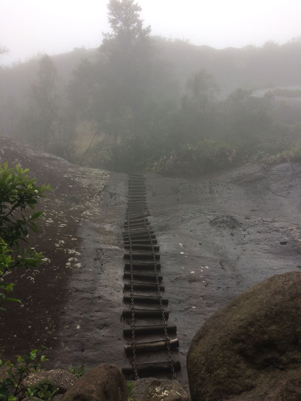 Bohužel jsme se probudili do deštivého zamračeného rána a předpověď počasí nepředpovídala nic dobrého - vytrvalý déšť celé další 2 dny, což byl přesně čas, který jsme měli vyhrazený pro treky v Drakensbergu. Dali jsme si vydatnou snídani, vybavili se pláštěnkami a i přes nepřízeň počasí vyrazili na George Trail k druhým nejvyšším vodopádům světa Tugella Falls. Většina trasy vedla vysokou trávou a na cestách byly kaluže. Výhledy žádné, hory se nám schovávaly do mraků, které byly níž a níž. Několikrát jsme museli přebrodit studenou řeku a nakonec - NIC. Vodopád přes mraky vidět nebyl, tak jsme našli aspoň kešku a šli úplně promočený zpět k autu. Trek měl kolem 17 km, a když je normální viditelnost, tak musí být skvělý. Takhle jsme ho alespoň prošli bez lidí (potkali jsme jednu jedinou skupinku nadšenců, jinak bylo liduprázdno). Po večerním brai (tenhle jihoafrický zvyk jsme si osvojili velice rychle) jsme sušili boty v baru u krbu a vymýšleli náhradní plán na další den, který měl také propršet.