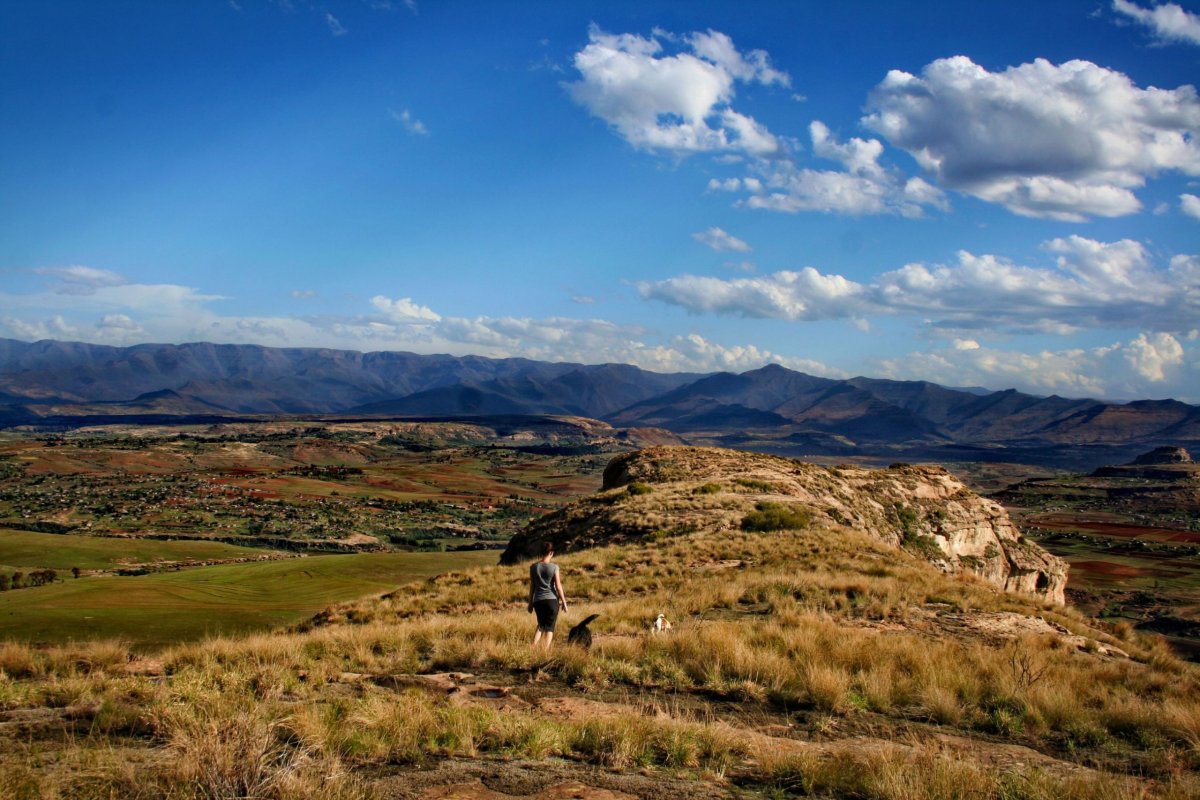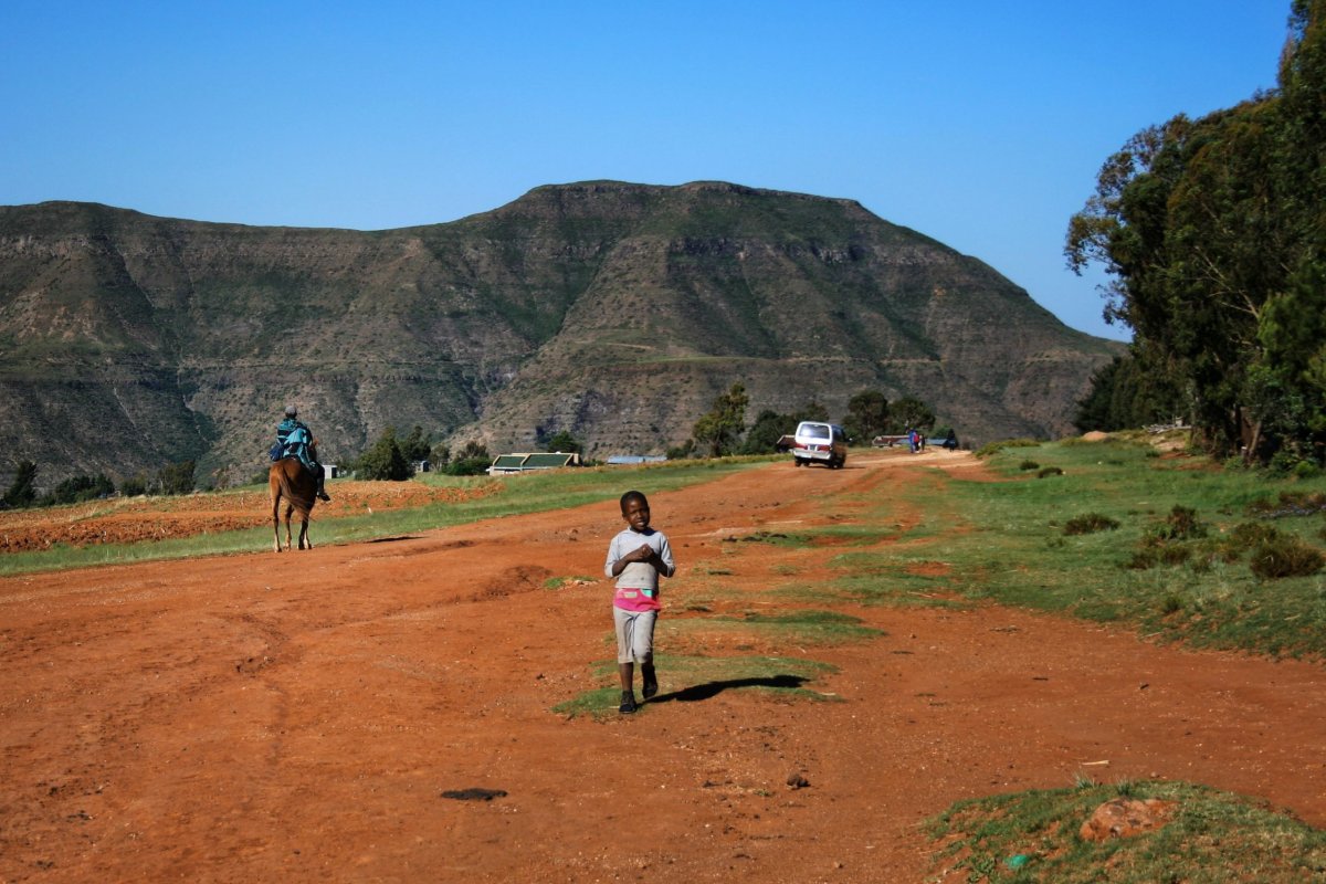 Brzy ráno jsme se rozloučili s novým psími kamarády a jeli na hraniční přechod Lesotha, jehož hranice byly jen pár kilometrů od ubytování. Lesotho by byl nejspíš daleko větší zážitek, kdybychom si pronajali offraoad. Ten byl ale několikanásobně dražší, a tak jsme místní cesty museli zvládnou VW Polo a trasu tomu přizpůsobit. Hraniční přechod nás překvapil svojí milou atmosférou a neformálností. Kromě razítka do pasu jsme dostali několik letáků s informacemi o zemi, místních zvyklostech, pravidel silničního provazu, mapu a zapsali jsme se do návštěvní knihy země (za posledních několik měsíců jediný Češi). První zastávkou byla vesnice Leribe, kde jsou v řece pozůstatky stop dinosaurů. Neunikli jsme pozornosti místních a tak nám ochotné průvodce dělaly děti a jeden zemědělec. Abychom viděli něco z hor, vydali jsme se na Mafika Lissu Pass (3099 m.n.m). Zatímco dole bylo přes 30°C, tak nahoře foukal ledový vítr a teplota byla asi 14°C. Když jsme hledali kešku, přihnali se k autu 3 chlapíci na koni, kteří byli celí zahalení v dece a na hlavě měli pletenou kuklu (jedná se o tradiční místní oděv pastevců), ale i tak nás dost vyděsili. Chtěli po nás pravděpodobně něco k jídlu, ale my jim nerozuměli ani slovo a tak jsme se radši rychle posunuli dál k Natural Bakong Reserve, což bylo opravdu zvláštní místo. Bylo zde postavené turistické zázemí jak někde v Krkonoších, ale lidi žádní. Náš dnešní cíl byl vesnička Malealea. Cesta mimo hory byla docela nezáživná, moc rychle neutíkala a cestou nás zastavilo několik policejních kontrol. Občas chtěli vidět řidičák a občas si prostě jen chtěli pokecat. Cesta začala být zajímavá asi 7 km od cíle, protože jsme ze svého ekonomického malého auta museli udělat offraod a projet průsmyk Gateway to Paradise.
