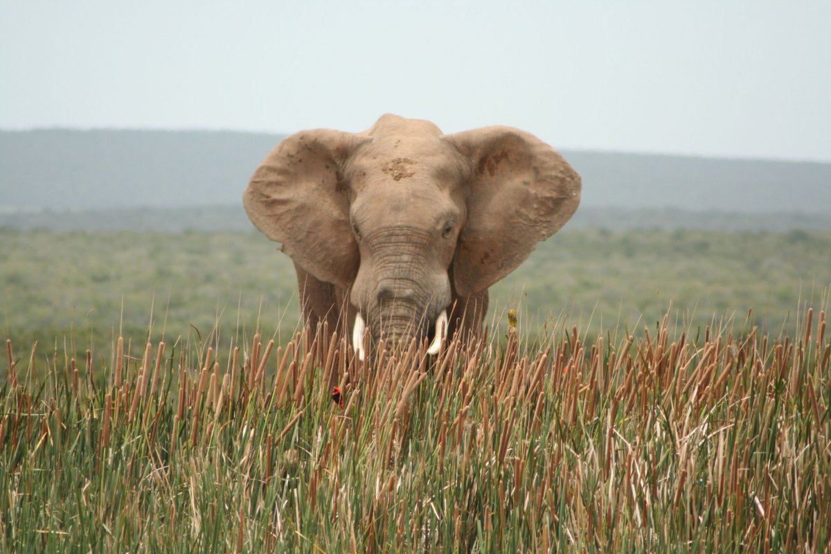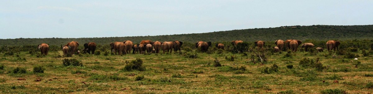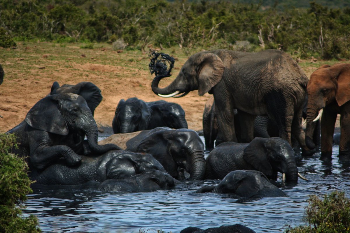 Kolem 7 ráno jsme vyrazili do národního parku Addo, který je ojedinělý velkou populací slonů. U brány do parku nás poslali do oficiálního kempu v parku, kde se musí zaregistrovat i denní návštěvníci. Po ránu tu byla celkem fronta, ale mimo kemp se davy rozptýlily. Doufali jsme, že potkáme ještě nějaké kočkovité šelmy, které tu mají také žít, což se nám nepoštěstilo, ale na slony jsme měli opravdu štěstí. Ve srovnáním s NP Kruger zde bylo méně zvířat podél cest, ale více vodních ploch, kde se zvířata koncentrovala. Nebyla to žádná velká jezera nebo řeky, ale malá napajedla. U napajedla Gwarnie Pan jsme viděli asi 40 slonů - velké, malé, koupající se, hrající si, troubící,....Jen jsme tiše seděli a zírali. Občas nějaký slon vyšel od napajedla mezi auta a způsobil trochu chaos. Taky jsme párkrát museli couvat. Takový slon totiž bez problému auto převrátí. A to jsme ještě nevěděli, co nás čeká dál. Odpoledne jsme dojeli k Hapoor Dam a už z dálky jsme viděli neskutečný obrázek - slon kam se podíváš, byla jich tu snad stovka a to nepřeháním :-). Dojeli jsme k přehradě, kde už stálo několik aut a ohromě je pozorovali. Slůňata neohroženě dováděla ve vodě a dospělí sloni občas výhružně prošli mezi auty. Jeden nás minul asi o metr. Když jsme se dostatečně vynadívali a sloni uhnuli ze silnice, tak jsme pokračovali. Kromě slonů jsme viděli i další zvířata - zebry, divočáky, antilopy kudu a eland, želvy, volavky, buvoly, hovnivála bez kuličky a kuličku bez hovnivála. Se zavírací dobou národního parku jsme se vrátili do stejného kempu v městečku Addo. K večeři jsme si ohřáli oblíbenou konzervu chakalaka (Poprvé jsme ji koupili kvůli vtipnému názvu, až potom jsme se někde dočetli, že je to jihoafrický tradiční jídlo). Začalo pršet a tak jsme se uklidili na verandu recepce a vymýšleli plán na další dny.
