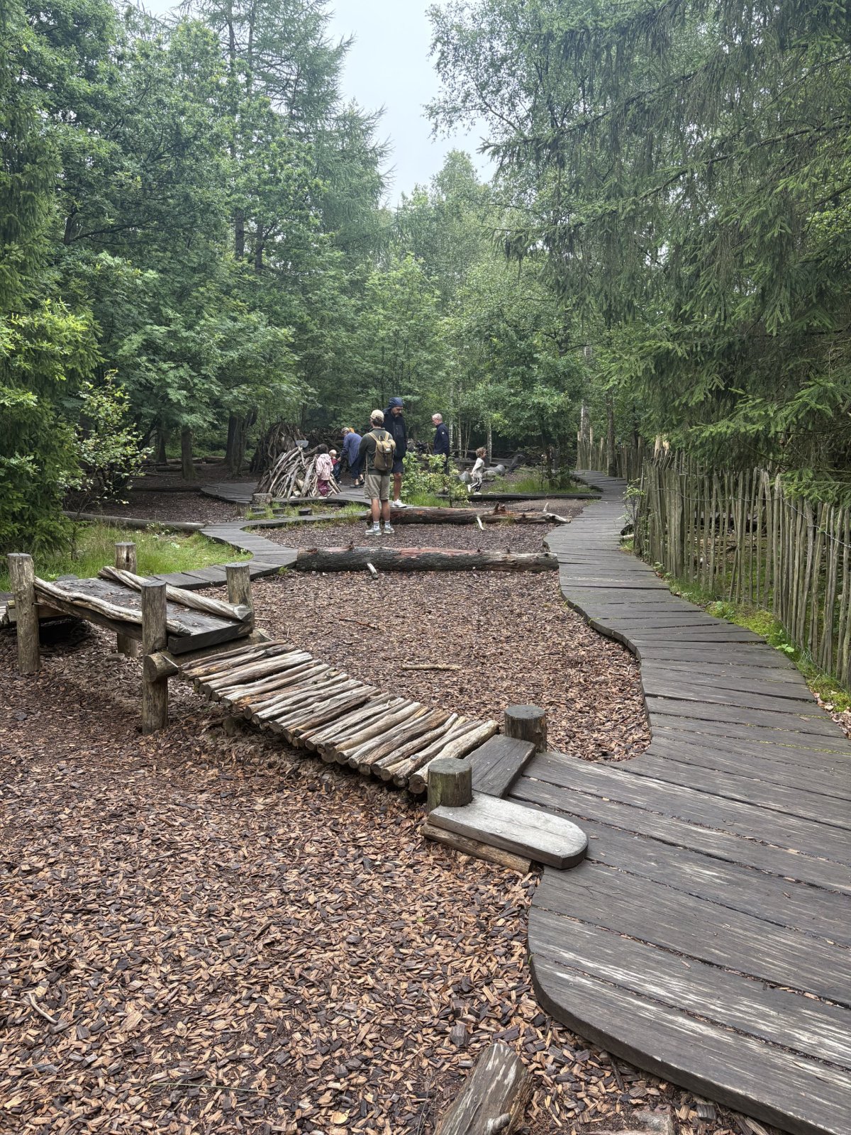 V stredu sa Polite zobudí chorý, a tak ho necháme doma oddychovať. Deti a program mám na starosti ja. Je chladný deň, 18 stupňov a trochu mrholí. Ja s mojimi dvoma deťmi a tretím od hostiteľov vyrážame do neďalekej prírodnej rezervácie Skrylle. Po krátkej prechádzke od parkoviska lesom sa dostaneme na obrovské ihrisko vyrobené z dreva - domčeky, veže, tunely, húpačky, balančné dosky... Dve staršie deti nadšene behajú a lozia, zatiaľ čo Nathi spokojne spí v kočíku.