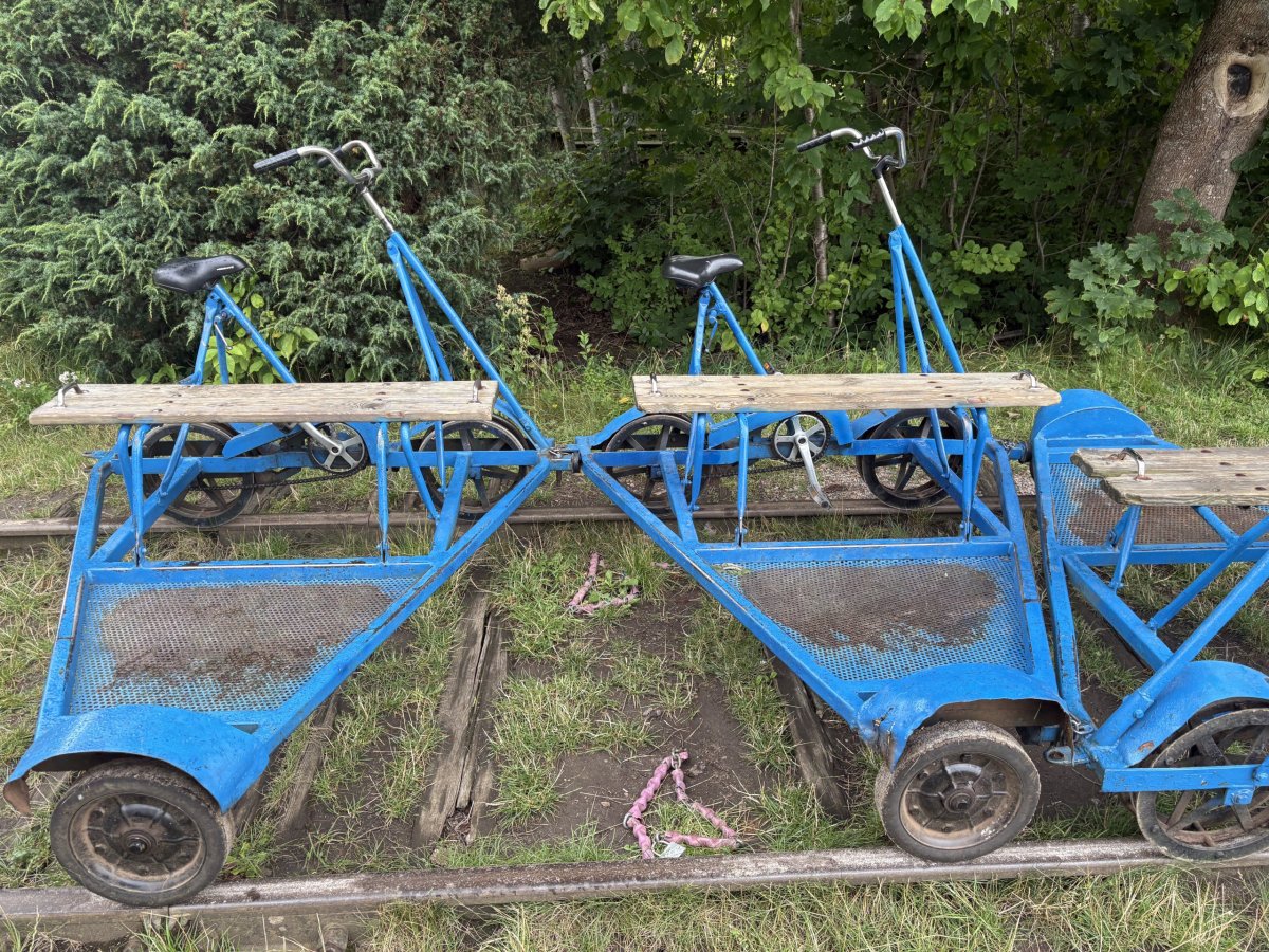 Po dobrodružstve v Skrylle sa presunieme na neďaleké staré, nepoužívané koľajnice, na ktorých sú namontované bicykle. Trať má 6 km v jednom smere a vedie cez tiché lesy, kvitnúce lúky a napokon otvorené polia. Bicykel má nákladnú časť na sedenie, zmestia sa naň tri až štyri osoby a jeden človek šliape. Prenájom stojí 300 SEK a zábava je zaručená.