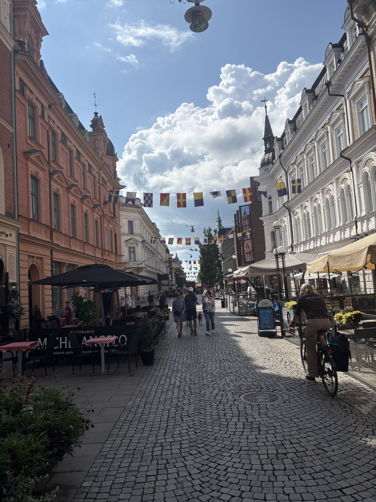 Mesto Jönköping, kedysi významný obchodný a dopravný uzol, sa rozprestiera na južnom konci jazera Vättern. Mesto má moderné nábrežie, kde sa dá prejsť popri vode či posedieť v kaviarňach s výhľadom na jazero, a historické centrum s úzkymi uličkami. Okolie mesta ponúka peknú prírodu, malebné pláže a niekoľko skvelých detských ihrísk. Za ideálneho dňa by sme tu strávili väčšinu dňa, pohrali sa na ihrisku, zjedli obed na pláži, požičali si kajak a trochu sa previezli s Kristinkou po jazere. No dnes je 18 stupňov a extrémne veterno. Tak zaparkujeme auto pri pláži, prejdeme sa okolo pláže do centra a po cca hodinke to vzdávame a vyberáme sa ďalej na juh, do študentského mestečka Lund.