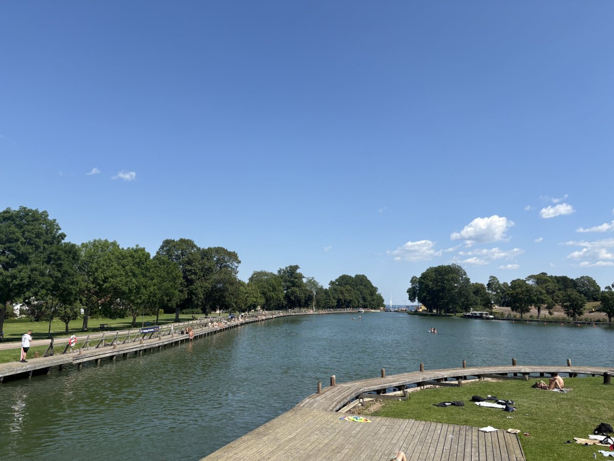 V nedeľu je opäť horúco, 28 stupňov a bezvetrie. Ráno sa naraňajkujeme, pobalíme veci a deti sa ešte chvíľu hrajú a sledujú zvieratká na farme. Nathi je už takmer úplne fit, no ja som úplne KO. Prehliadku Linköpingu musíme odložiť na inokedy, ale chceme sa tam aspoň zastaviť na obed s kamarátom, ktorého sme dlho nevideli.