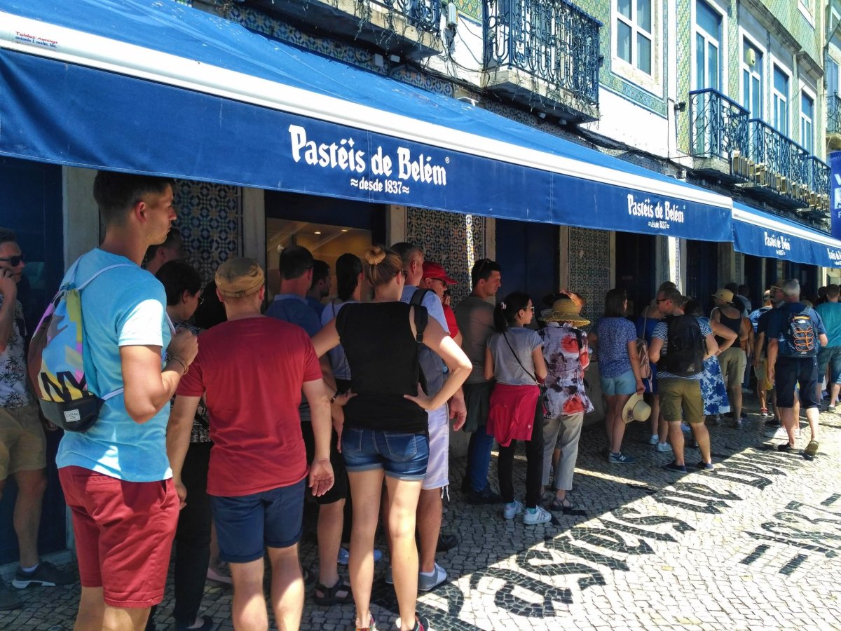 Druhý den začínáme nákupem snídaně v místním krámku a pekárně. Po snídani jdeme na náměstíčko, odkud jezdí tramvaj číslo 15 a vyrážíme směr Belém. Po cca 30 minutách vystupujeme a jdeme hned k Torre de Belém a i přes brzký příchod je tu dost velká fronta, která navíc moc neodsýpá. Do věže pouští omezené množství návštěvníků, tak čekáme cca půl hodiny, než se dostaneme dovnitř. V útrobách chvíli trvá, než se dostaneme úplně nahoru, protože úzké schodiště je regulované semaforem, aby se lidé nestřetli na schodišti. Nahoře je hezký výhled na celé nábřeží a hlavně na dominantu most Ponte 25 de Abril (který je kopií sanfranciského mostu Golden Gate), na který z druhého břehu hledí obrovská socha Ježíše Krista. Po prozkoumání celé věže jdeme podél břehu k památníku mořeplavců Padrão dos Descobrimentos a odtud přes silnici k Mosteiro dos Jerónimos, kde zavítáme pouze do přilehlé kaple, kde má náhrobek známý mořeplavec Vasco de Gama. Po té už míříme pro nás k nejlepší "atrakci" čtvrti Belému a to je místní známa výrobna tradičního portugalského "koláčku" Pastéis de nata. Antiga Confeitaria de Belém je originální výrobna této pochutiny a pouze zde se za přísných tajných podmínek každý den vyrábí ty pravé Pastéis de Belém. Před výrobnou stojí několikametrová fronta což nás na první pohled trochu vystraší, ale naštěstí čekáme jen pár minut a neseme si ven několik sladkých koláčků. V přilehlém parku na chvíli relaxujeme, vychutnáváme tuto dobrotu (hlavně já). Po snězení všech kusů nasedáme do autobusu a jedeme směr náměstí Praça do Comércio. Zde je nám opět nabízeno několik druhů drog, tak bereme nohy na ramena a vycházíme skrz vítězný oblouk Arco da Rua Augusta pryč. Omrkneme známý výtah Santa Justa, rozbořený klášter Convento do Carmo, funikularem (zubačkou) vyjedeme na vyhlídku Colina de São Roque a poté se vydáme zpět na ubytování. Cestou se stavíme ještě podívat na vlakové nádraží, odkud zítra pojedeme na výlet a opět si vychutnáme západ slunce na naší oblíbené vyhlídce s jednou lahví portugalského vína.