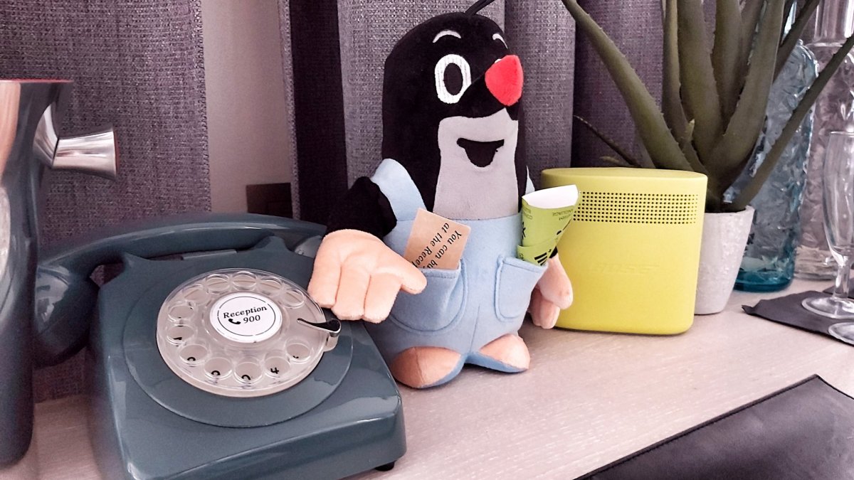Krteček na pokoji a polička s Kájou Gottem/Vaškem Havlem - to mě dojalo nejvíc. Je mi jasné, že cílíte zejména na zahraniční klientelu, o to víc si cením, že tou největší ozdobou pokojů jsou ryze české poklady. Opravdu mě to dojalo.