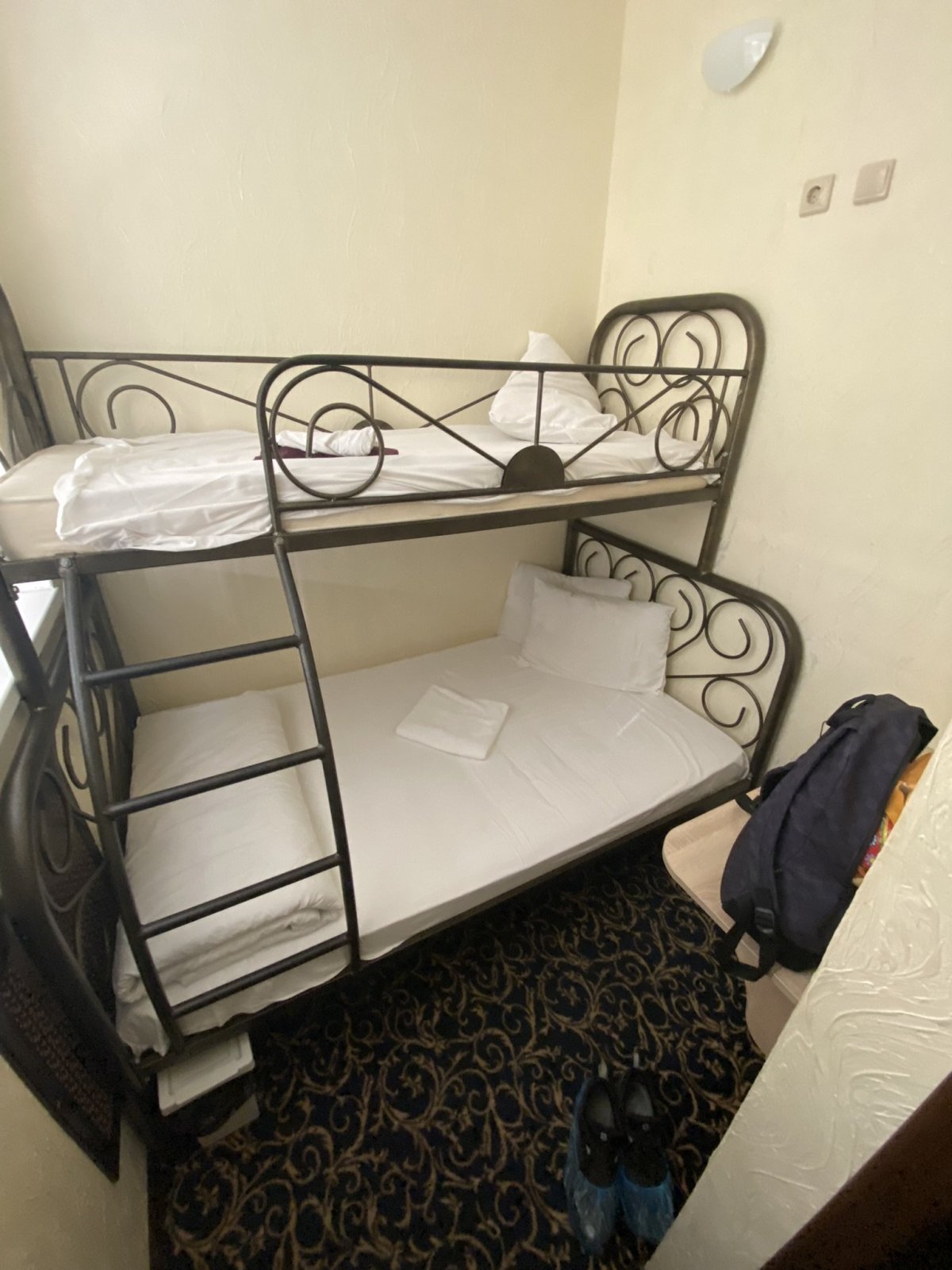 Veškerá cena za ubytování je pro dvě osoby, koupelna nebyla soukromá, ale vůbec nám to nevadilo, low cost je low cost. Petrohrad - 600 Kč, dvě noci.