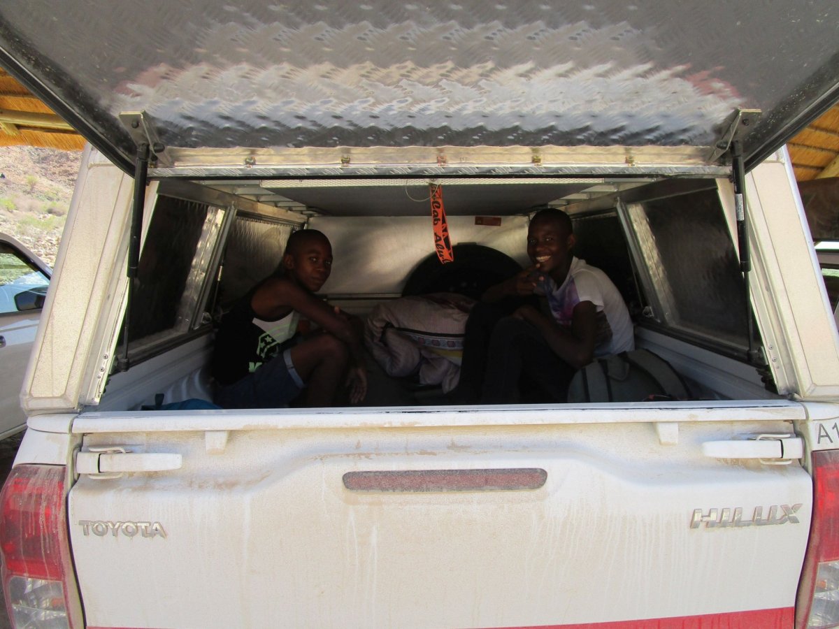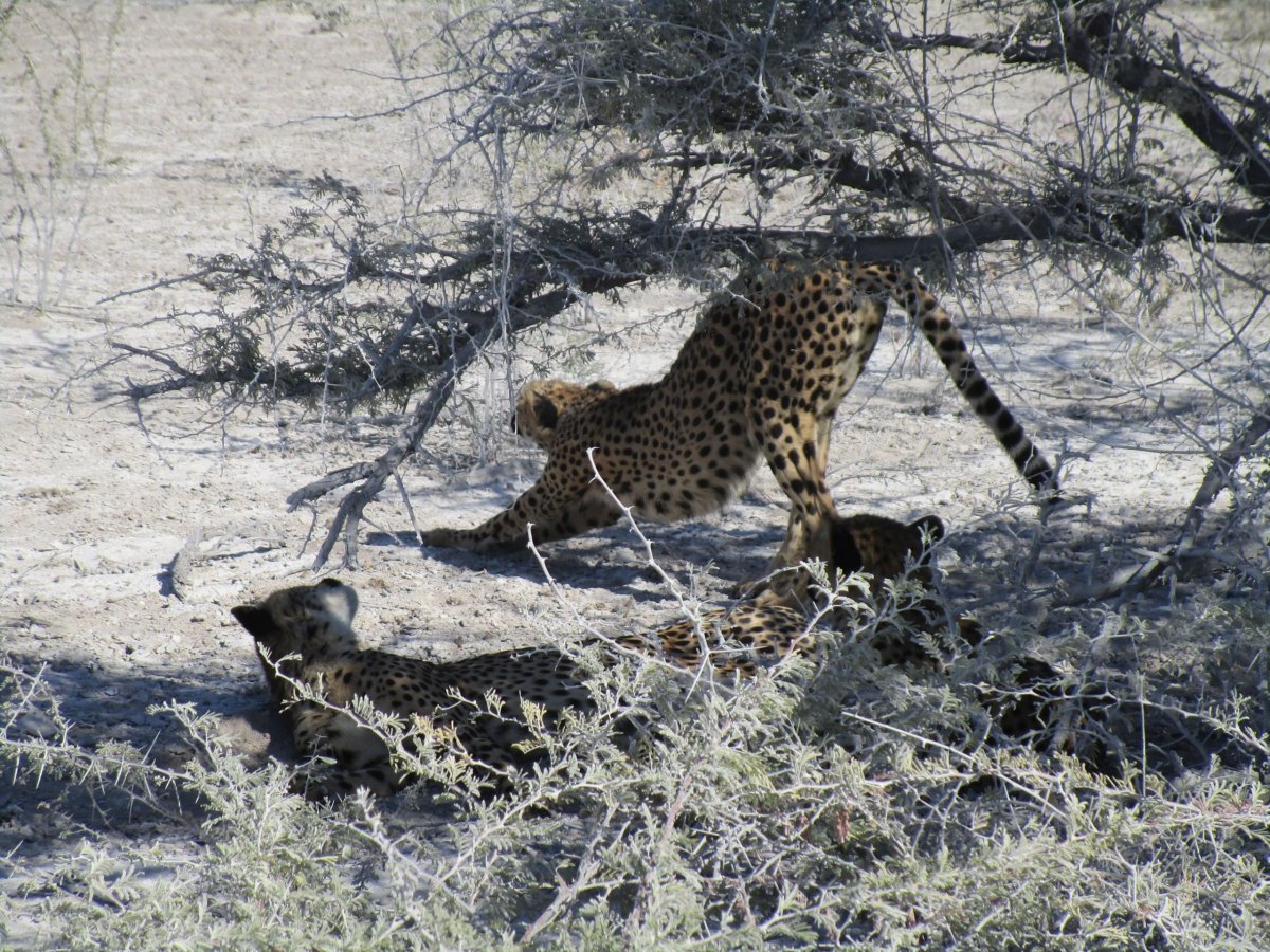 Přes noc jsme si nechávali boty venku a v Etoshe jsme na to doplatili, ráno po probuzení nám donesl boty roztrhané na kusy pracovník kempu. Nevíme, kdo se o to postaral, nicméně jako poučení pro příště to stačilo. Trochu nás potěšilo, když jsme pak nacházeli i jinde v kempu zbytky bot, pravděpodobně jsme tedy nebyli sami.