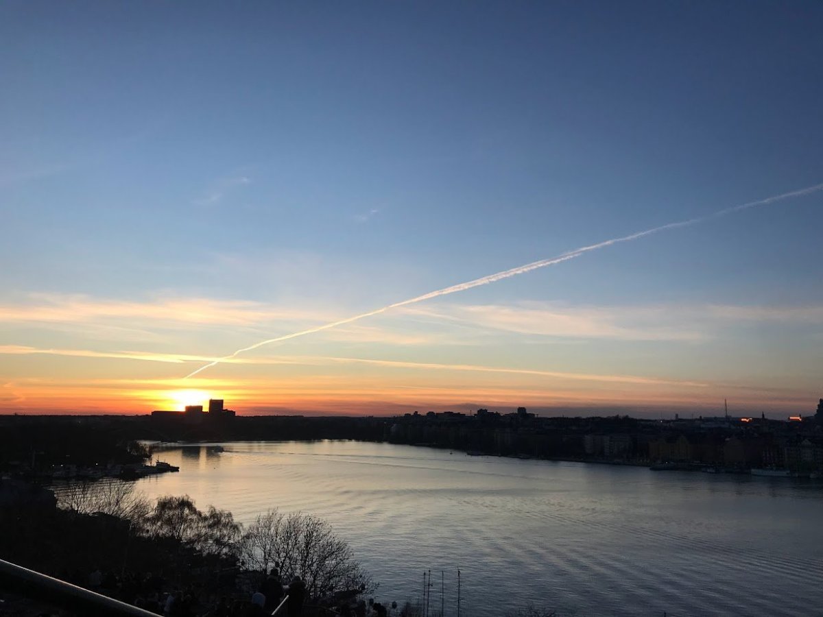 Na západ slunce jsme se přesunuli na Skinnarvikberget . Nejvyšší místo Stockholmu - celých 53 metrů nad mořem :D Na tomto místě s námi bylo dalších asi 100 lidí, tudíž je to očividně profláklé "západové" místo. Je z něj nádherně vidět na město. Odtud už jsme večer jeli zpět na ubytování.