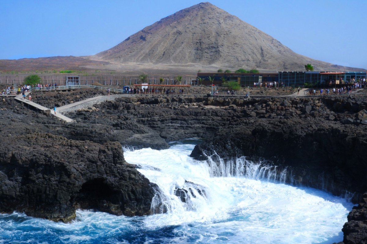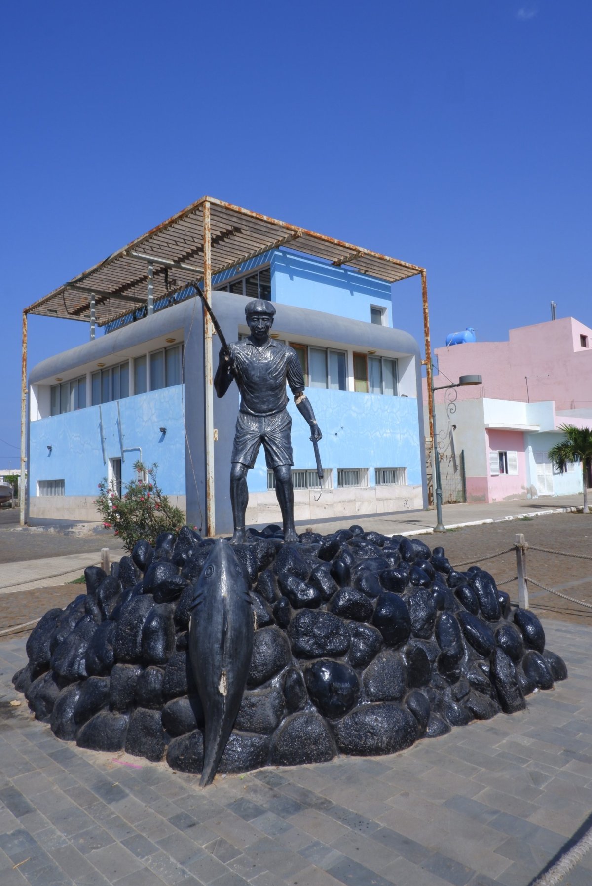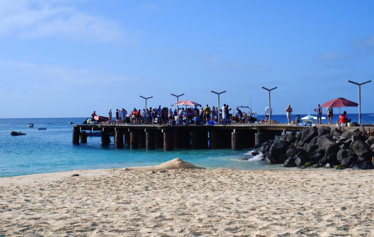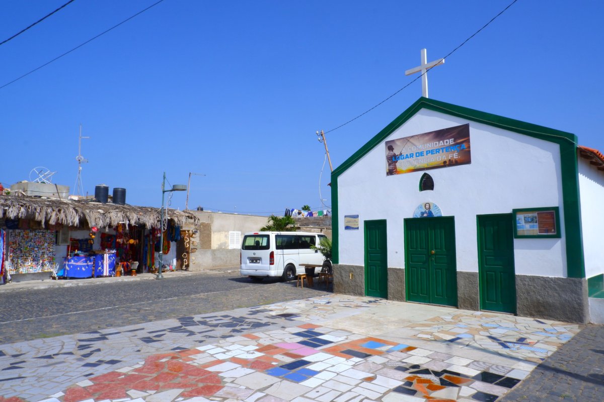 Je přístav na západní straně ostrova. Zaparkovali jsme u vodárny. Jen málo domácností na ostrově má vodovod a většina obyvatel si musí jezdit s 50tilitrovými kanystry pro vodu sem do rozdělovny, kterou zásobuje voda z jiného ostrova, kterou sem lodě přivážejí. Nás ale spíš zaujal obchůdek naproti, kde nám dali ochutnat místní alkohol, podobný naší slivovici a sladší verzi s kondenzovaným mlékem (22%), kterou už jsem ale nezkoušela. Je to taková povinná úlitba místní podnikatelům, kam organizované zájezdy vozí turisty. Zde ale bylo sympatické, že nám nikdo nic nevnucoval ke koupi. Obchůdek je plný místních suvenýrů, takže budete mít z čeho vybírat. V blízkém přístavu rybáři vykládali svůj úlovek. Zelený kostelík nám připomněl, že Kapverďané, byť Afričané, jsou katolíci a ne Muslimové.