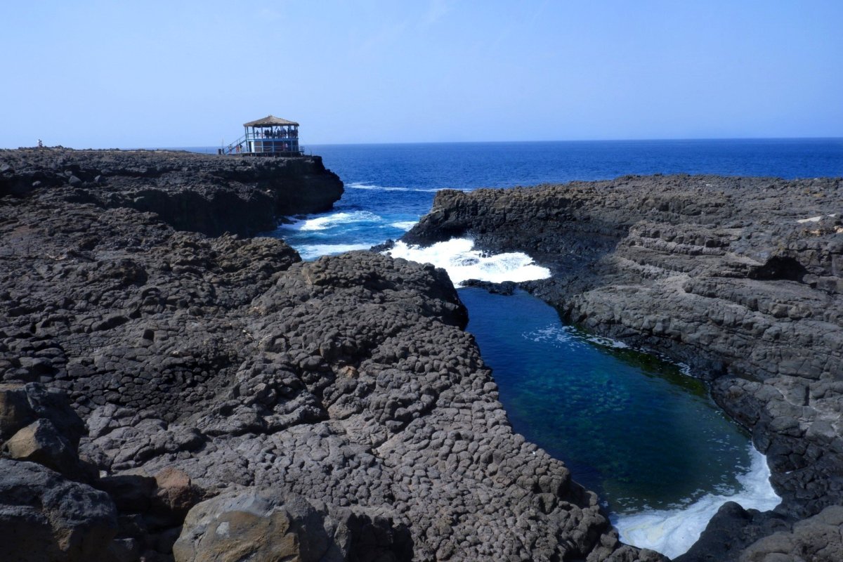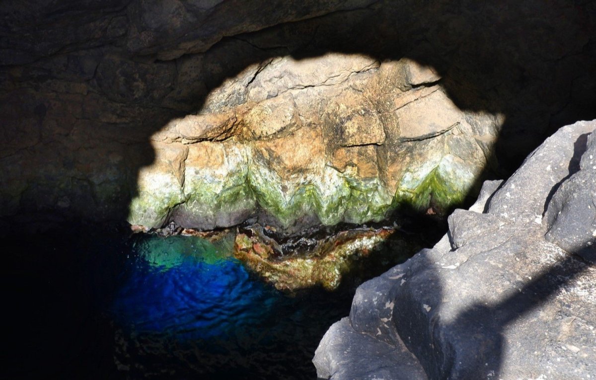 Z přístavu Palmeiry jsme zamířili polní cestou směrem do Borracoa, lávové oblasti, kde se nachází zajímavá atrakce, tzv. modré oko. Vstupné činí 3 eura, dostanete pořadové číslo a čekáte, až na vás přijde řada. Plošina, ze které je vidět modré oko je poměrně malá a pouští na ni jen pár lidí, proto můžete čekat i hodinu, pokud před vámi přijel velký autobus. My čekali skoro 45 minut, ale tento čas můžete využít v místní kavárně, prohlídkou botanické zahrady nebo sledováním vln, které se rozbíjí a útes. Samozřejmě jsou tu i toalety. Pak vás pustí na vyhlídku a vy s úžasem hledíte na modré oko. Na pohled máte asi minutu, než vám další začnou další dýchat na krk. I tak si to myslím bez problému stihnete vyfotit. A co že je to onen úžasný efekt „modré oko“? Když je slunce na správném místě, ve správný čas a ve správnou roční dobu, sluneční paprsek pronikne škvírou ve skále a osvětlí v moři krásné modré oko. My jsme tam nebyli ani ve správnou dobu a čas, ani slunce nestálo ve správném úhlu, takže jsme kýžený efekt spíš tušili než viděli, ale i tak to byl krásný zážitek. Říká se, že nejlépe je vidět na jaře nebo na podzim, hlavně v říjnu.
