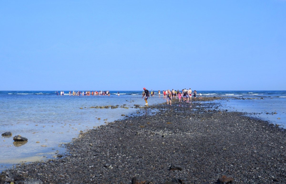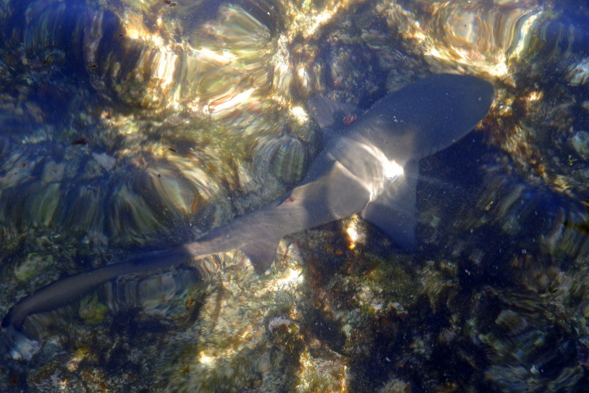 Cesta do vody je dost kamenitá, rozhodně musíte dávat pozor, abyste neupadli, což se některým bohužel také přihodilo. Plavky si brát nemusíte, stačí vám kraťasy, pokud vám nevadí, že vás sem tam nějaká vlna trochu ohodí. Po asi tři sta metrech jste u cíle a je nutné tu dodržovat pár pravidel. Za prvé, musíte stát rozkročmo, aby pod vámi mohli žraloci v klidu proplouvat a necítili se ohroženi. Za druhé, nesmíte na ně sahat. Pokud by se tato pravidla nedodržovala, samice by už nerodila do těchto mělkých vod a mláďata by byla následně více ohrožena predátory. Na focení žraloků máte přibližně 30 minut, průvodce je láká na kousky rybího masa. Když budete mít štěstí, bude kolem vás proplouvat několik malých žraloků. A nemusíte se bát, opravdu nekoušou.